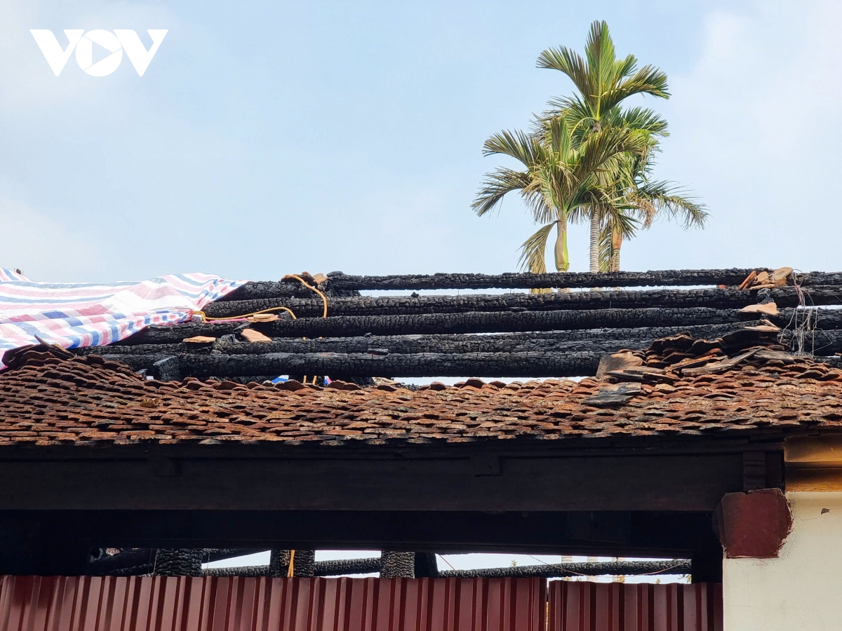 Nhiều cấu kiện gỗ, mái ngói biến dạng sau vụ cháy.