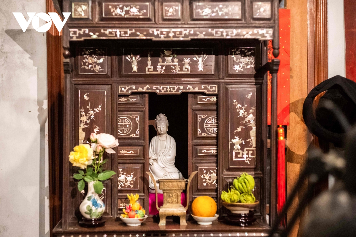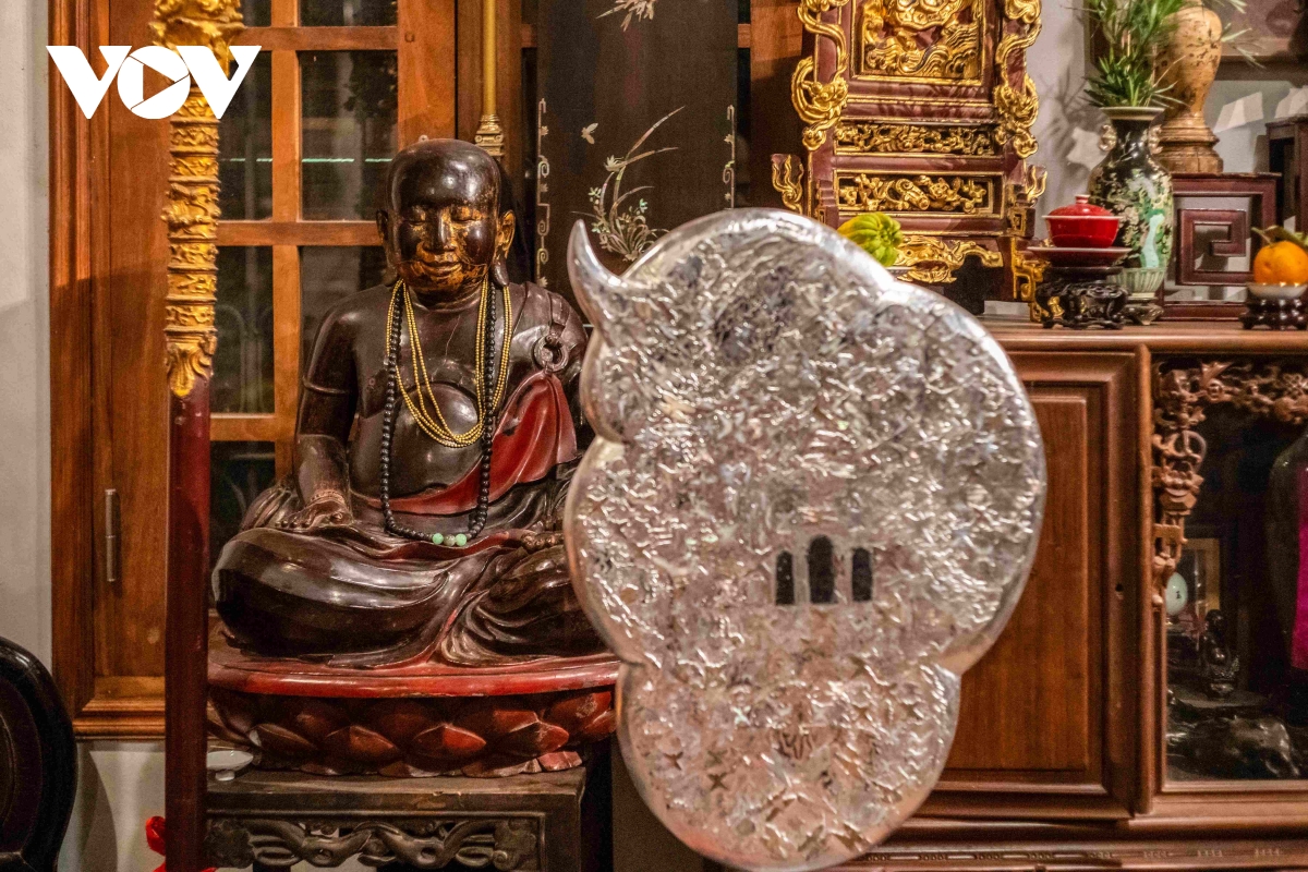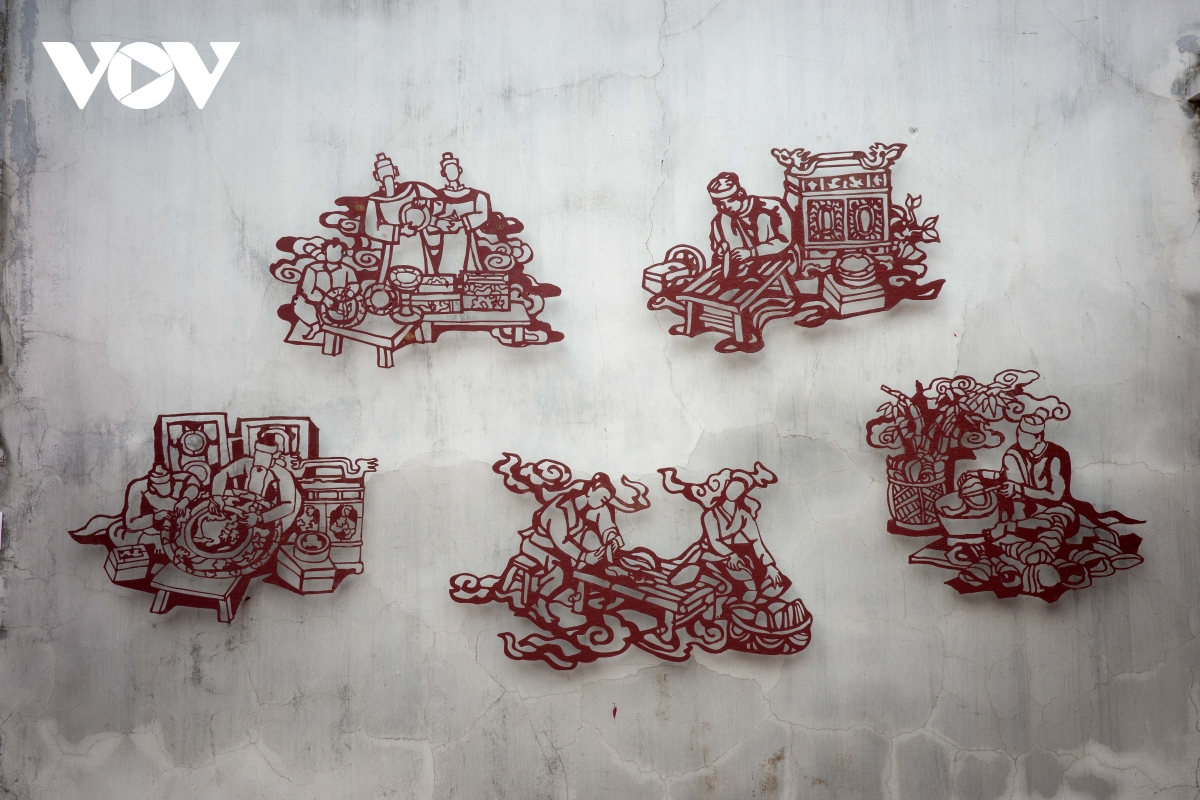 Không gian đình về chiều, lắng đọng giữa âm thanh phố thị, gợi nhớ một phố nghề đã xa. Triển lãm như một nhịp cầu nối quá khứ vàng son với hiện tại nhiều biến động.