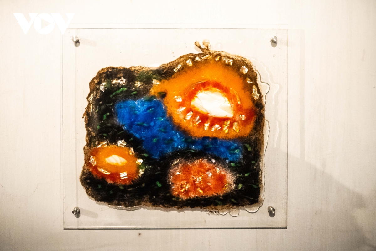 Trên nền đất nung, dưới lớp mica mỏng gợi như mặt nước, những mảnh trai lặng lẽ phát lộ ánh sáng nội tại, tựa những “tế bào của sự sống” đang âm thầm chuyển động, tìm đường trở về với tự nhiên. Tác phẩm trở thành biểu tượng của sự hồi sinh, nơi vẻ đẹp được đánh thức từ chính những gì từng bị lãng quên.