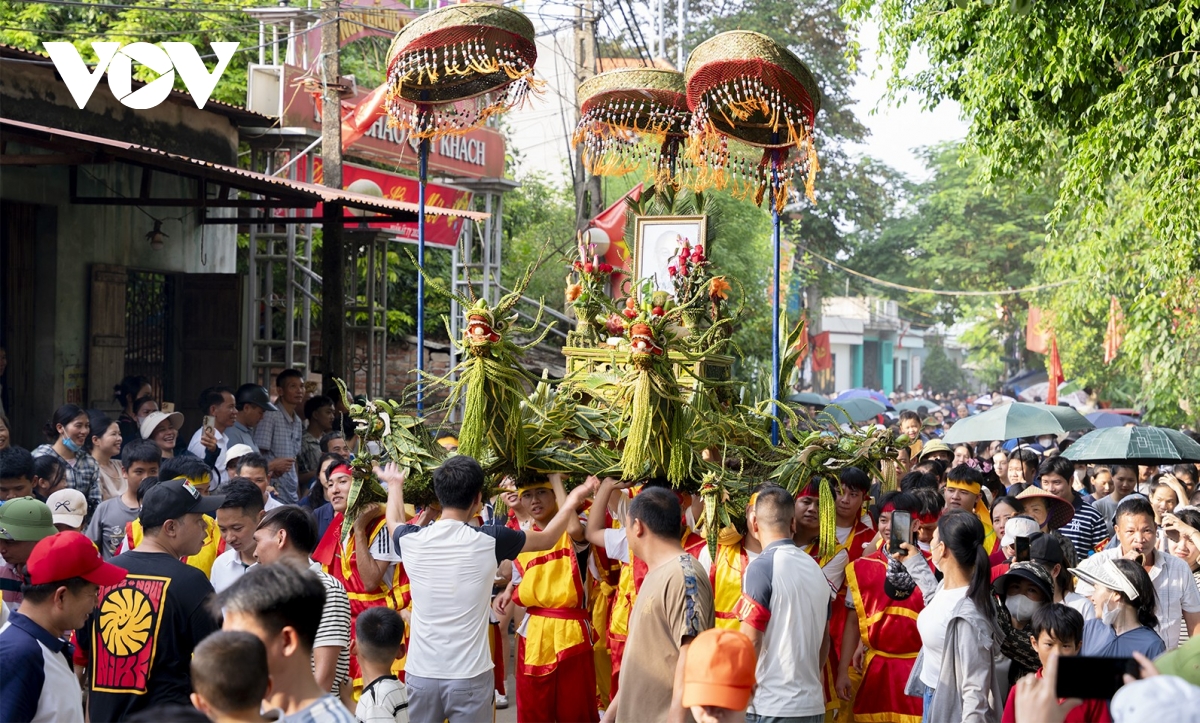 Sau chương trình kỷ niệm của xã, kiệu được rước khoảng 2 km dọc tuyến đường làng, từ Quán Chính Linh Từ cuối xóm đến sân vận động đầu xóm, để người dân khắp nơi cùng tham gia và hòa chung không khí lễ hội.