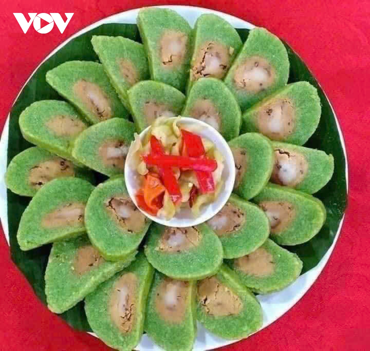 Bánh tét có hình bán nguyệt, màu xanh đẹp mắt