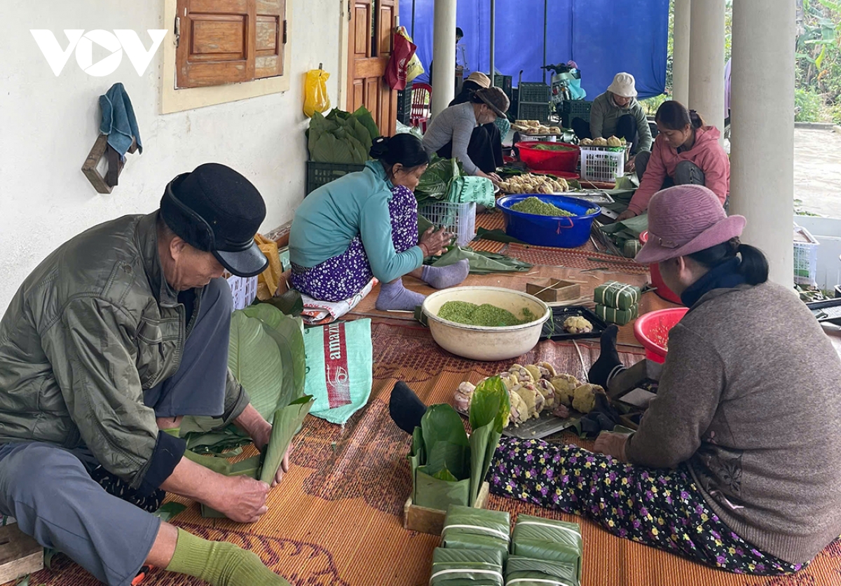 Những ngày này, đầu ngõ cuối xóm làng Đại An Khê, xã Hải Thượng, huyện Hải Lăng, tỉnh Quảng Trị rộn ràng hơn. Nhiều nhà chong đèn cả đêm để gói, nấu bánh tét, bánh chưng, bánh tày cho kịp đơn hàng của khách. Từ cụ bà, lão ông, người lớn tuổi đến phụ nữ, thanh niên trai tráng, ai cũng bận rộn. Người vo nếp, lau lá, làm nhân, người thì gói bánh, đóng hàng... Bàn tay ai cũng thoăn thoắt, nhuần nhuyễn, tỉ mỉ. Cánh thanh niên, đàn ông thì lo đóng bánh vào sọt, chở ra ngã ba lộ đầu làng gửi xe đi khắp ngoài Bắc, trong Nam và lên cả Tây nguyên…