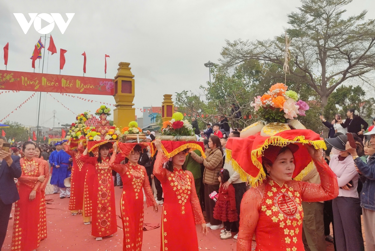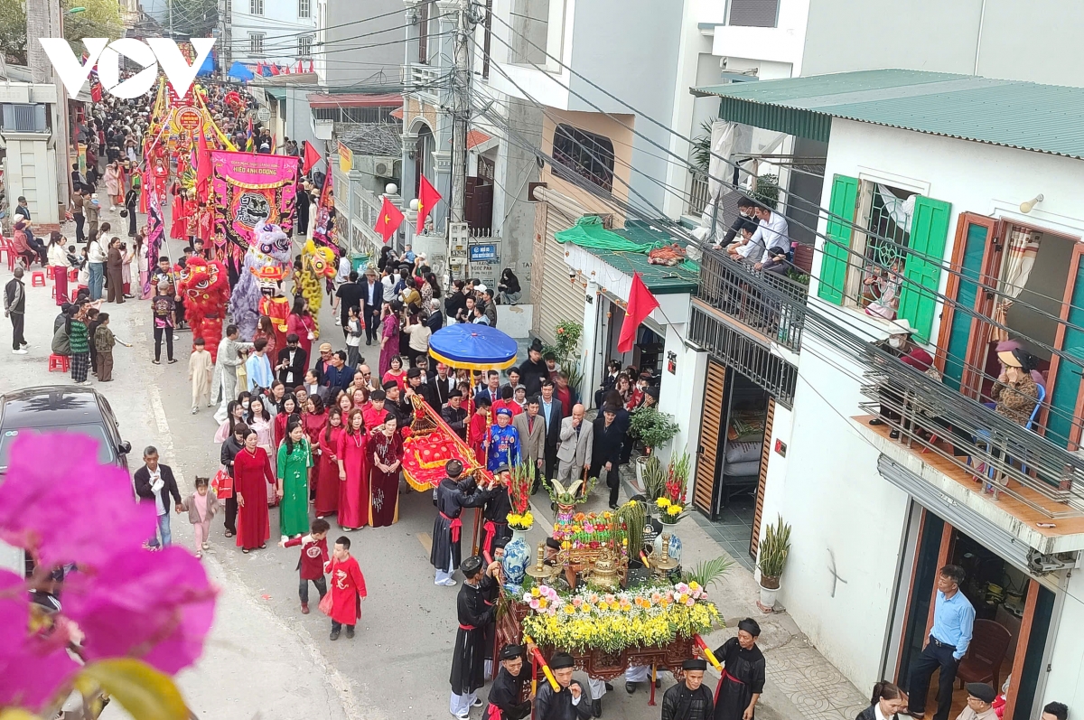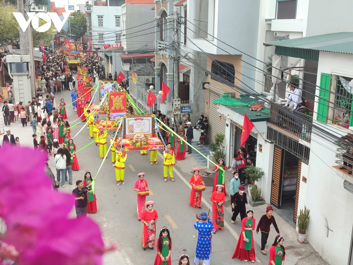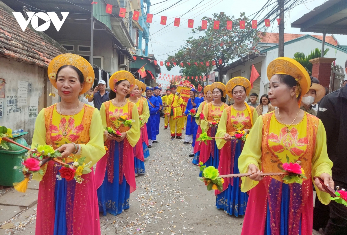 Bên cạnh 7 gia đình, dòng họ tổ chức rước riêng theo truyền thống, lễ hội còn có hai đoàn rước tập thể của phường Phong Cốc và Liên Hòa, góp phần làm nên quy mô trang trọng và khí thế chung của ngày hội vùng đảo.