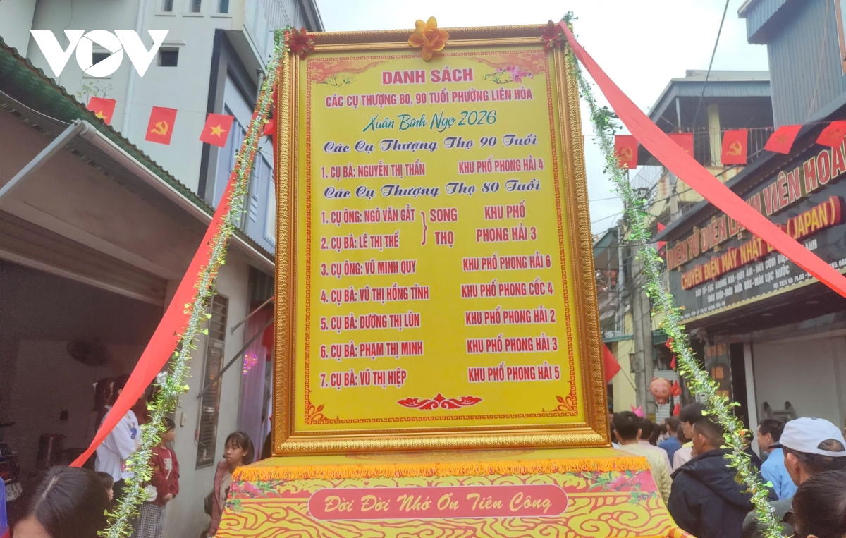 Năm nay có 239 cụ tròn 80, 90, 100 tuổi rước lên miếu Tiên Công. Trong đó có 195 cụ tròn 80 tuổi, 37 cụ tròn 90 và 7 cụ tròn 100 tuổi.
