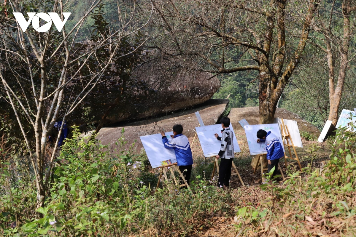 Sáng tác tranh ở bãi đá khắc cổ Khe Hổ.