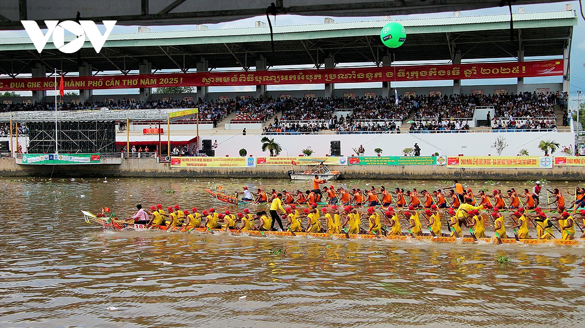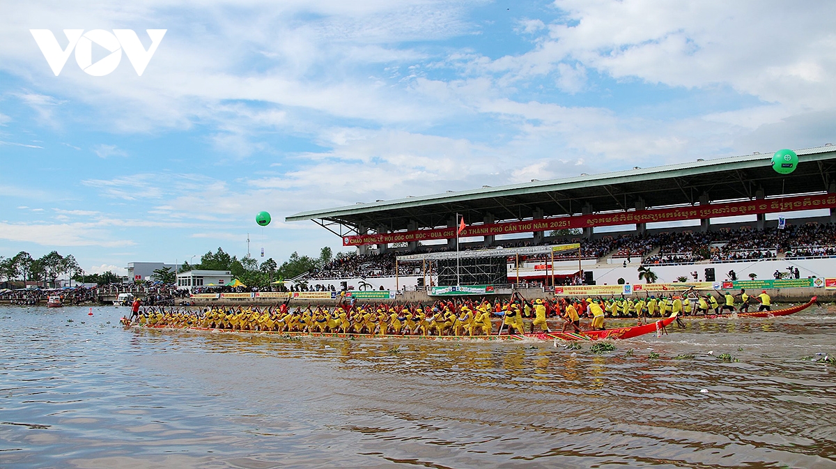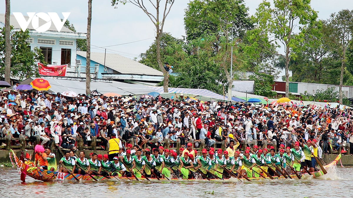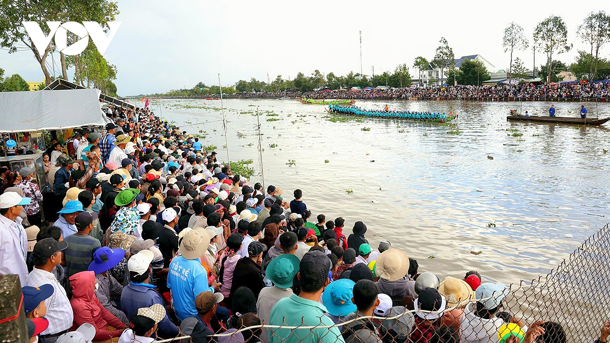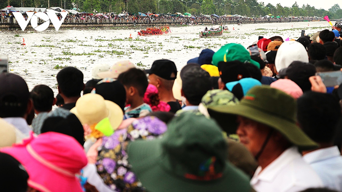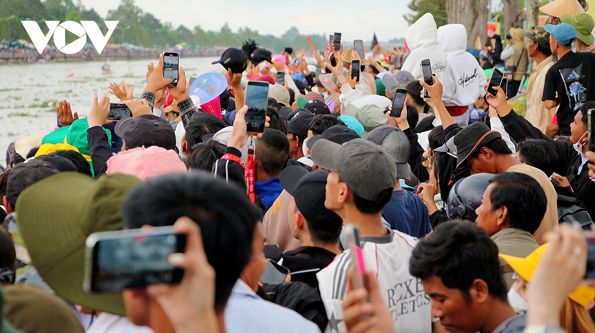 61 đội ghe Ngo tranh tài với sự cổ vũ cuồng nhiệt của hàng vạn người dân đứng 2 bên bờ sông Maspero.