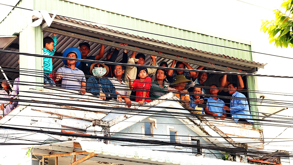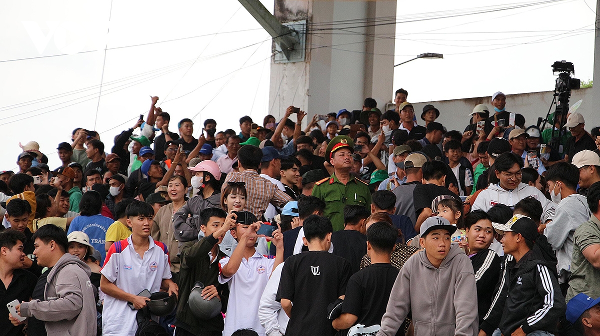 Nhiều người còn leo lên cây, lên mái nhà, thậm chí lội nước chỉ để nhìn rõ hơn khoảnh khắc so kè của những chiếc ghe Ngo rực rỡ hoa văn, sắc màu.