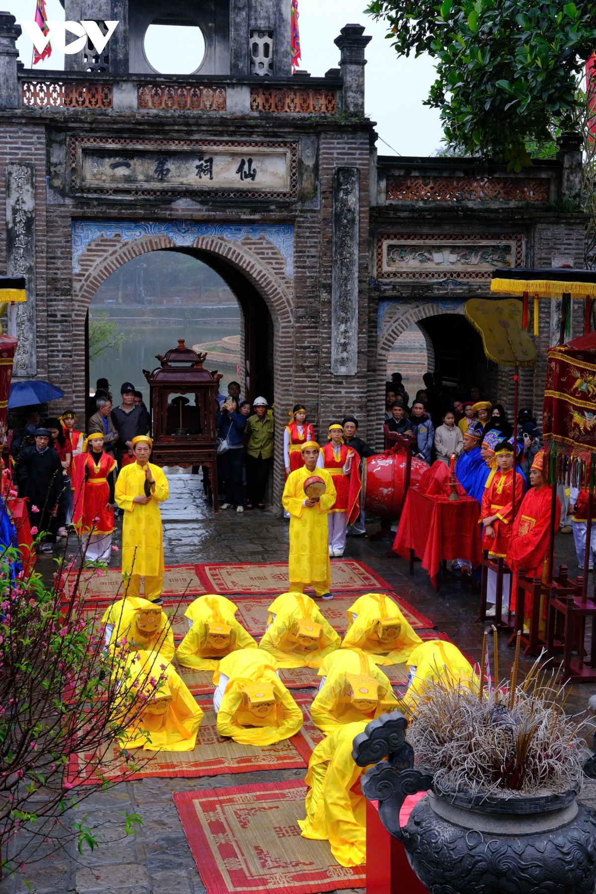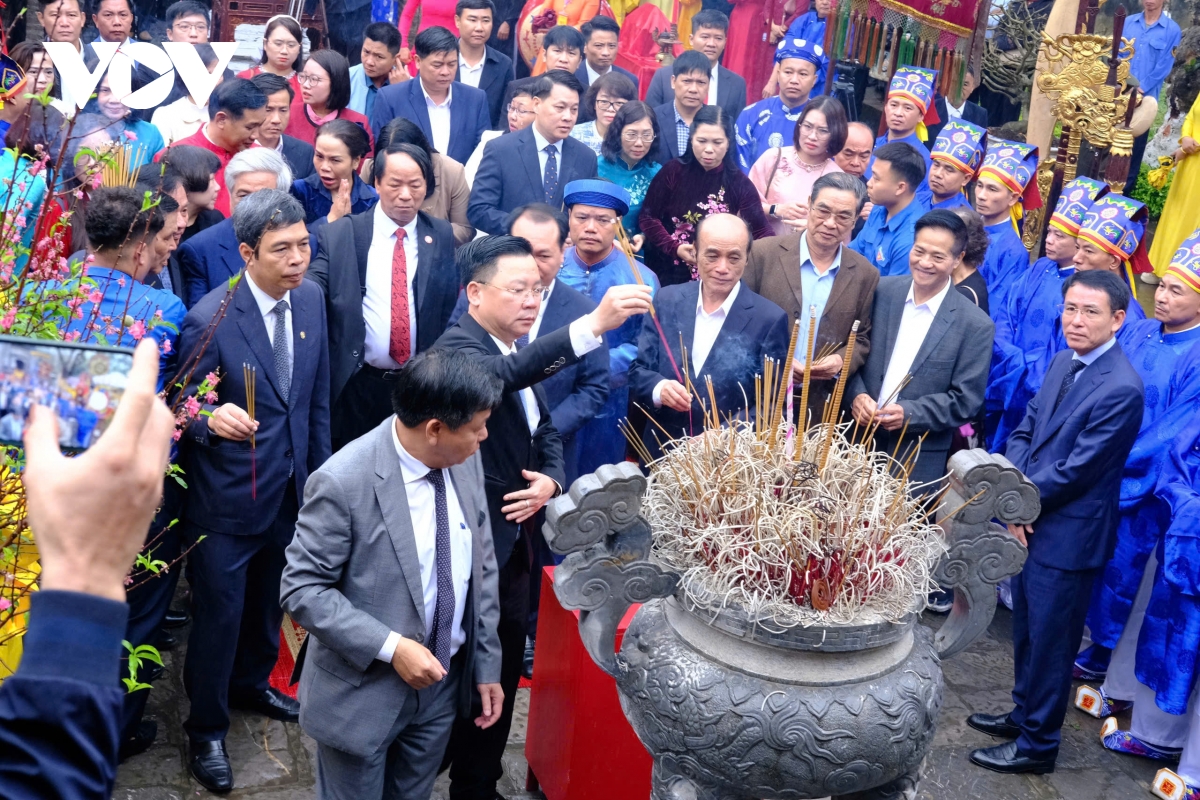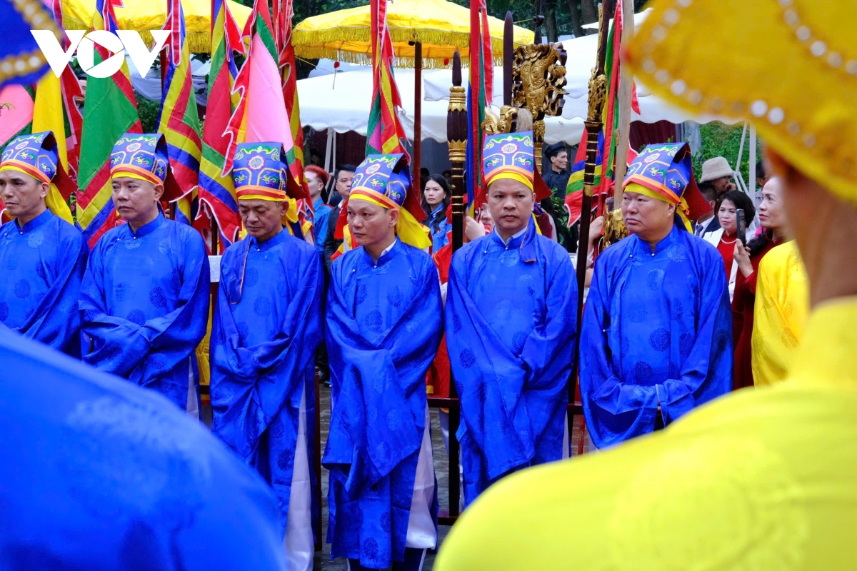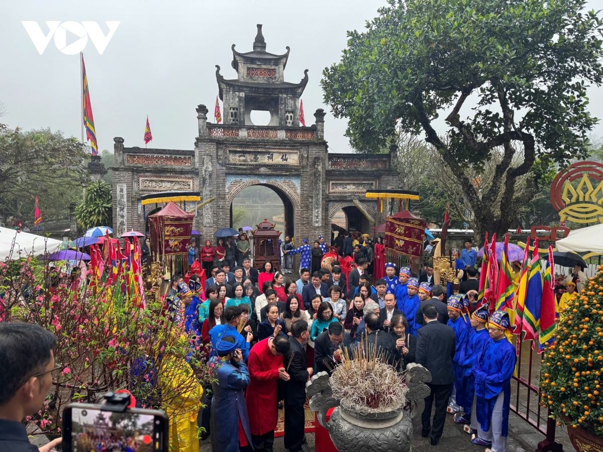 Trong không gian linh thiêng của khu di tích, tiếng trống hội rộn ràng, nghi lễ được thực hiện quy củ, thể hiện sự thành kính của cộng đồng đối với vị vua khai quốc và các bậc tiền nhân. Không khí lễ hội vừa trang trọng vừa gần gũi, thu hút đông đảo người dân và du khách tham dự.