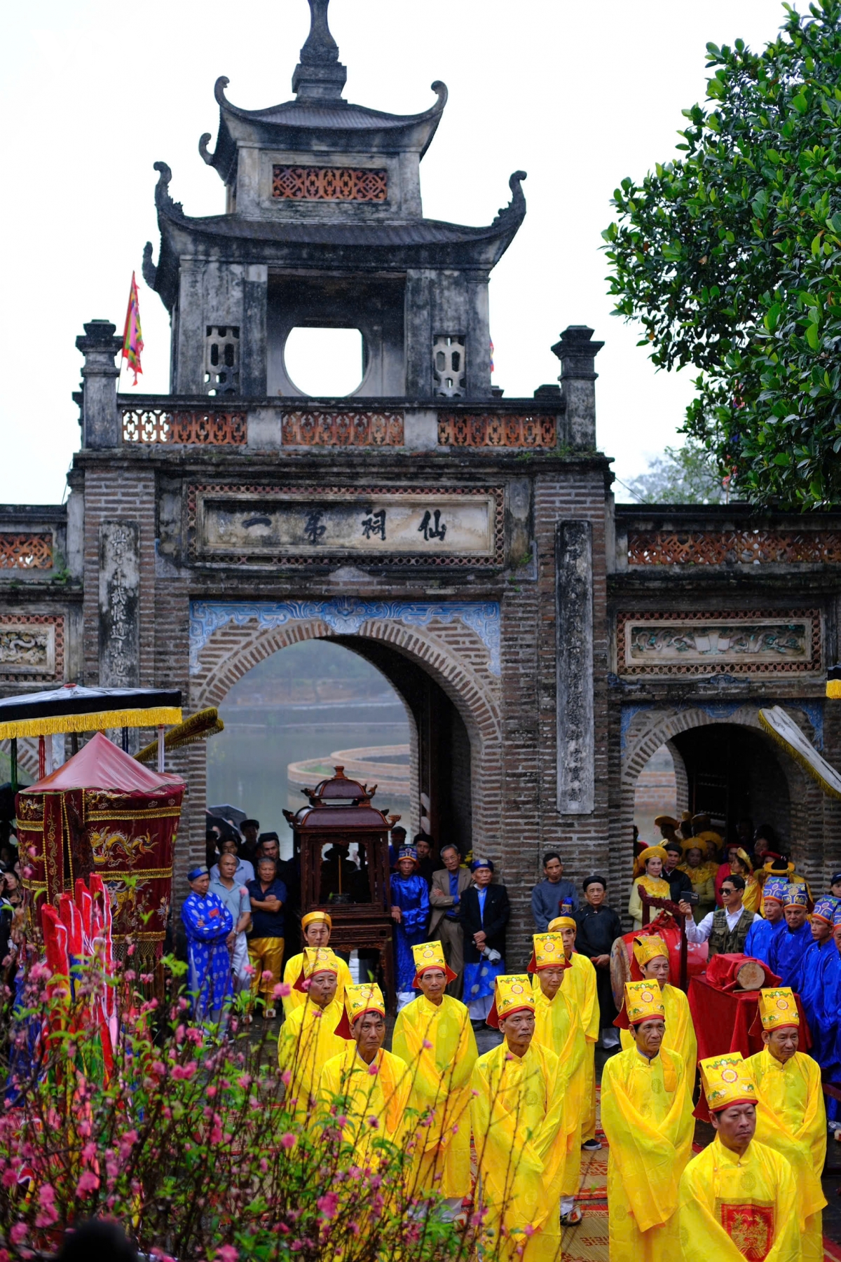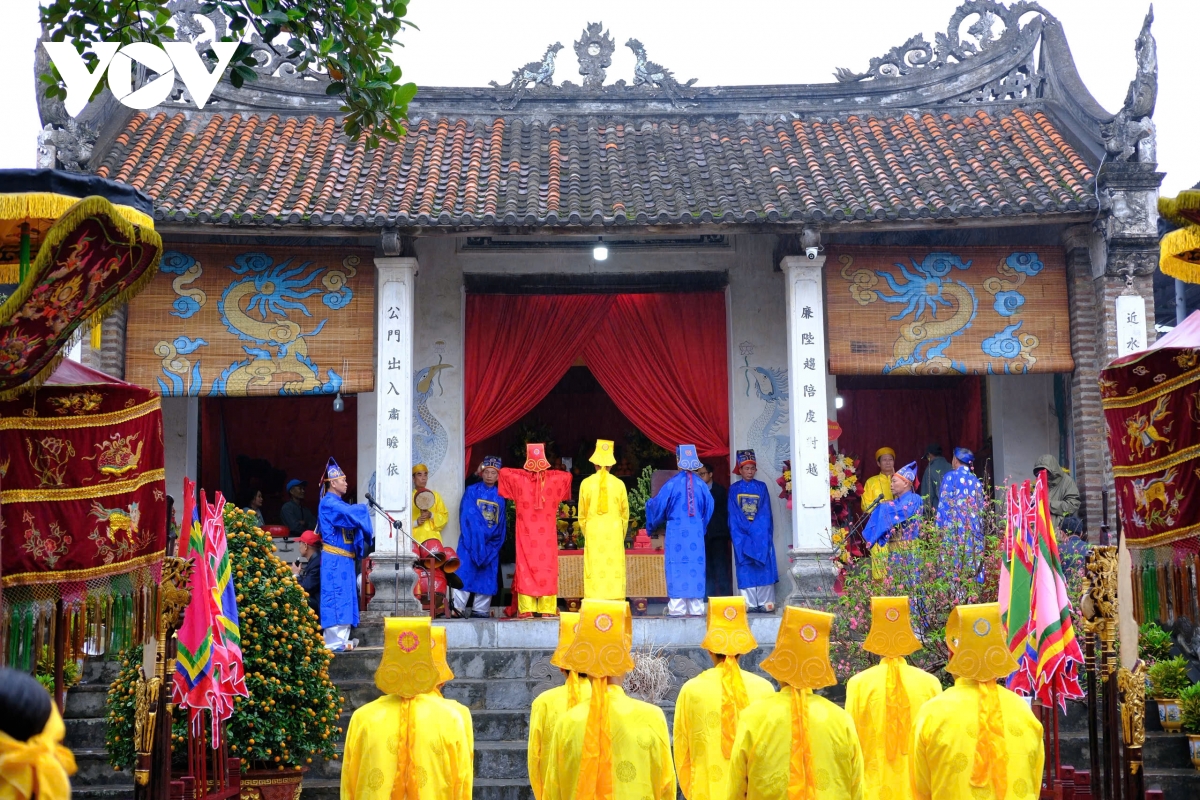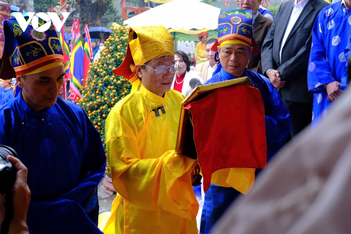 Trong không gian linh thiêng của khu di tích, tiếng trống hội rộn ràng, nghi lễ được thực hiện quy củ, thể hiện sự thành kính của cộng đồng đối với vị vua khai quốc và các bậc tiền nhân. Không khí lễ hội vừa trang trọng vừa gần gũi, thu hút đông đảo người dân và du khách tham dự.