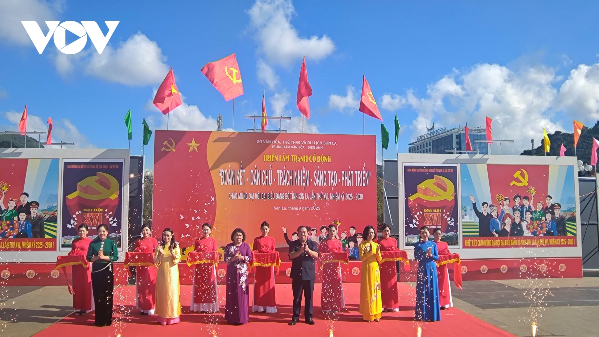 VOV.VN - Trong điều kiện thời tiết thuận lợi, ngày 24/9, tại Quảng trường Tây Bắc, đông đảo nhân dân các dân tộc tỉnh Sơn La đã tham gia khai mạc Triển lãm tranh cổ động và Lễ ra quân tuyên truyền chào mừng Đại hội đại biểu Đảng bộ tỉnh Sơn La lần thứ XVI, nhiệm kỳ 2025 – 2030.
