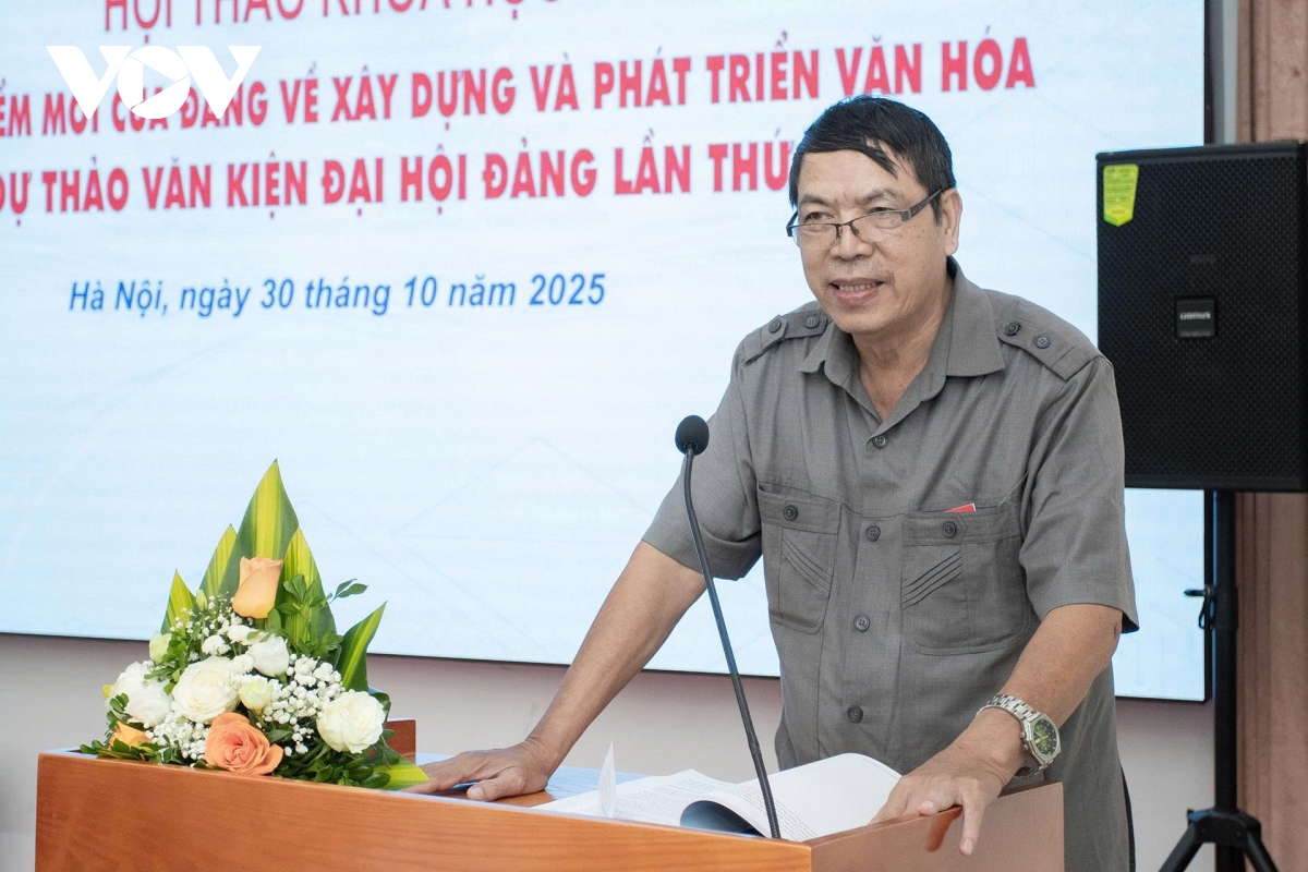 Tại hội thảo, PGS.TS Phạm Duy Đức, nguyên Viện trưởng Viện Văn hóa và Phát triển, Học viện Chính trị quốc gia Hồ Chí Minh cho biết, phần “Phát triển mạnh mẽ, toàn diện văn hóa và con người Việt Nam” trong dự thảo Báo cáo Chính trị trình Đại hội XIV thể hiện bước phát triển mới trong tư duy lý luận của Đảng về vị trí, vai trò và phương thức phát triển văn hóa trong thời kỳ mới. Từ cách tiếp cận coi văn hóa là nền tảng tinh thần của xã hội, đến xác lập nó là nguồn lực nội sinh, động lực và hệ điều tiết của phát triển đất nước, Đảng đã nâng văn hóa lên vị thế trung tâm trong chiến lược phát triển quốc gia bền vững.