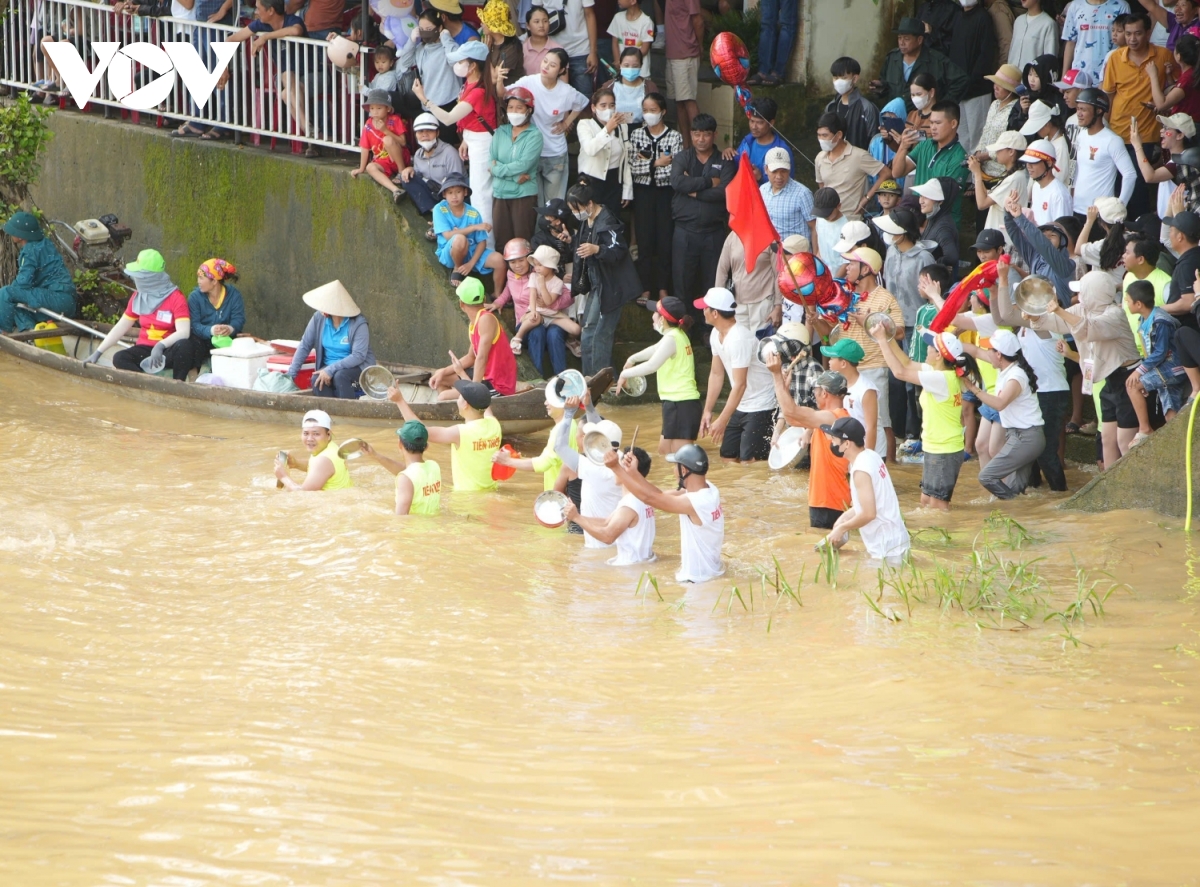 Cổ động viên lao xuống sông khua gõ các vật dụng cổ vũ các đội đua