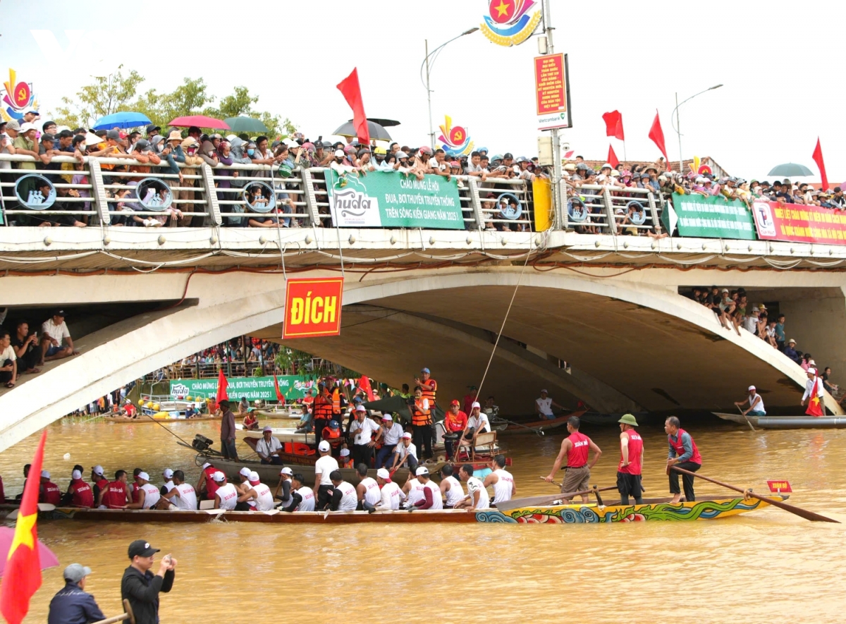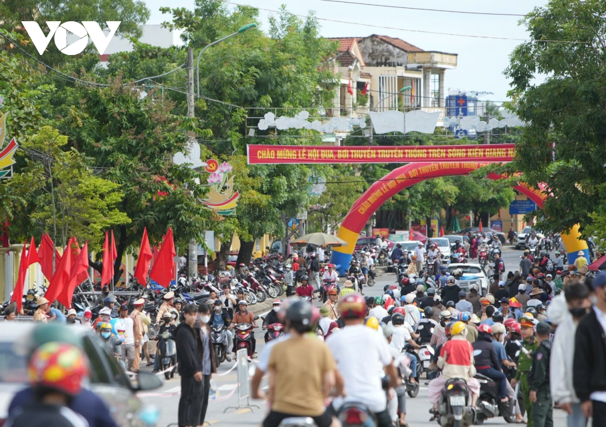 Sáng sớm, hàng ngàn người dân đổ về trung tâm xã Lệ Thủy, tỉnh Quảng Trị, đứng dọc 2 bên bờ sông Kiến Giang cổ vũ lễ hội đua thuyền truyền thống. Lễ hội đua thuyền truyền thống năm nay diễn ra trong bối cảnh chính quyền địa phương 2 cấp chính thức hoạt động. Tuy nhiên, những đội đua vẫn có những tên gọi gắn liền với tên đất, tên làng của vùng chiêm trũng Lệ Thủy. Người dân Lệ Thủy tự hào là quê hương có 2 di sản văn hóa phi vật thể cấp quốc gia là Hò khoan Lệ Thủy và lễ hội bơi, đua thuyền truyền thống trên sông Kiến Giang.