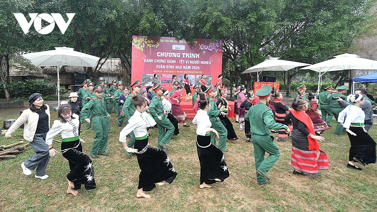 VOV.VN - Ngày 8/2 (21 tháng Chạp), tại Làng Văn hóa - Du lịch các dân tộc Việt Nam, Cục Văn hóa các dân tộc Việt Nam (Làng Văn hóa) đã tổ chức chương trình “Bánh chưng xanh – Tết vì người nghèo” năm 2026 và dựng cây Nêu ngày Tết tại Làng.
