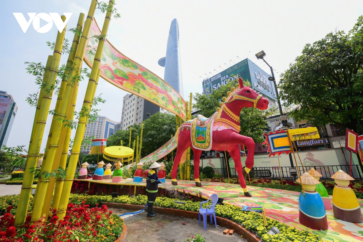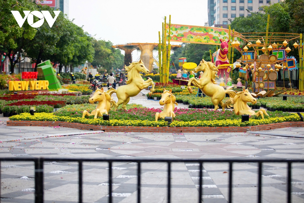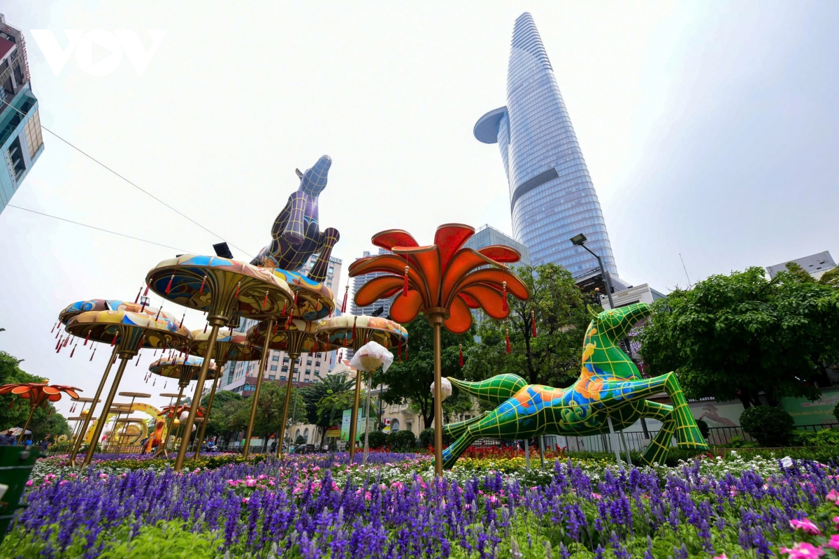 Đường hoa Nguyễn Huệ Tết năm nay được thiết kế với nhiều đại cảnh, tiểu cảnh sáng tạo, kết hợp giữa yếu tố truyền thống và hiện đại, mang thông điệp về khát vọng phát triển và hội nhập. Các linh vật, mô hình nghệ thuật cùng hệ thống ánh sáng được đầu tư công phu, hứa hẹn mang đến diện mạo mới mẻ cho không gian lễ hội.