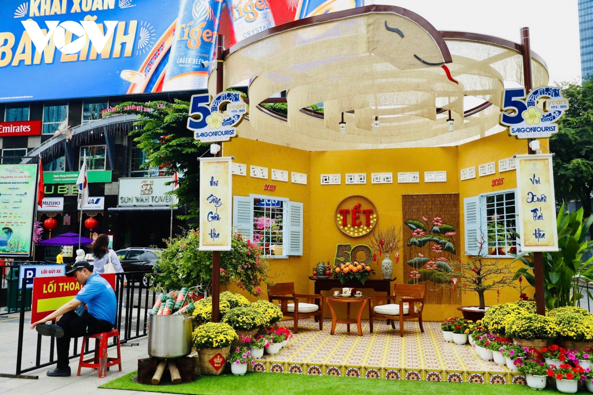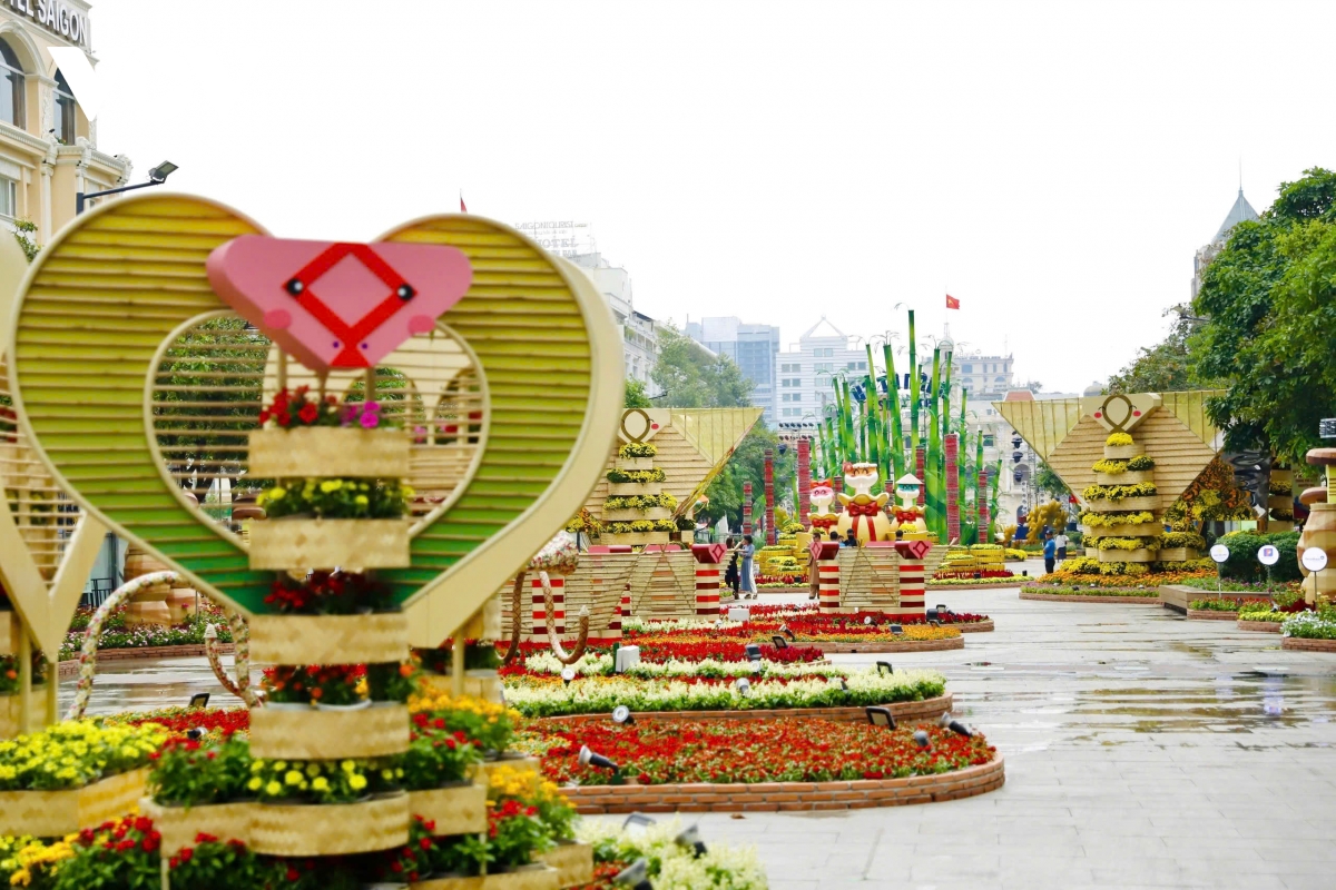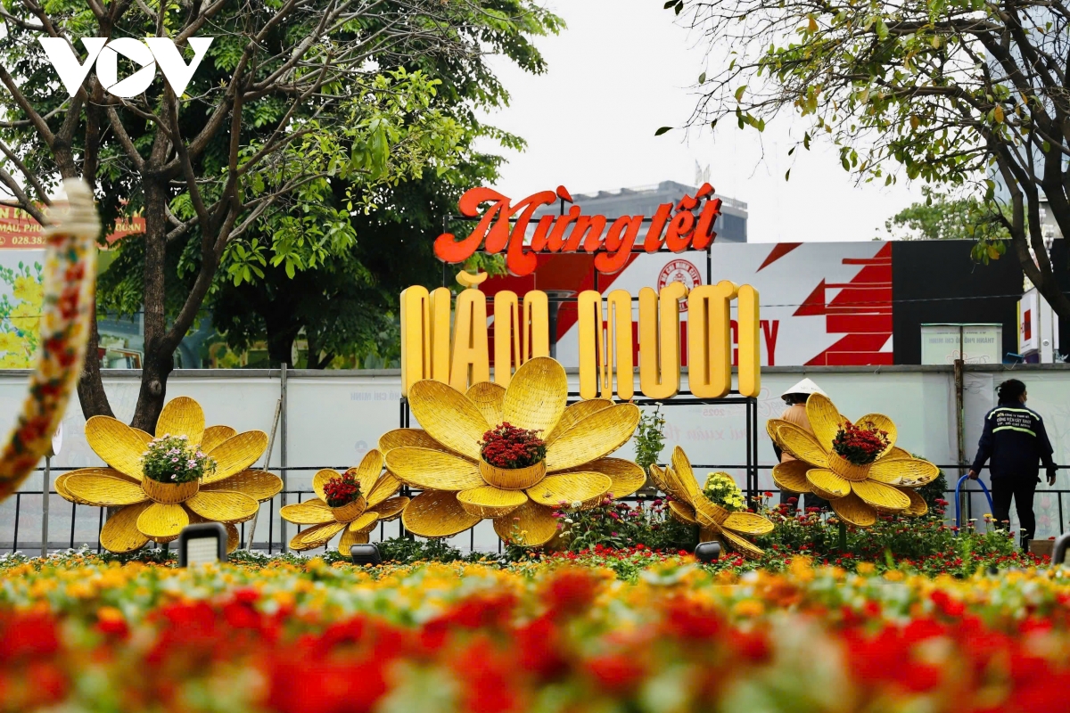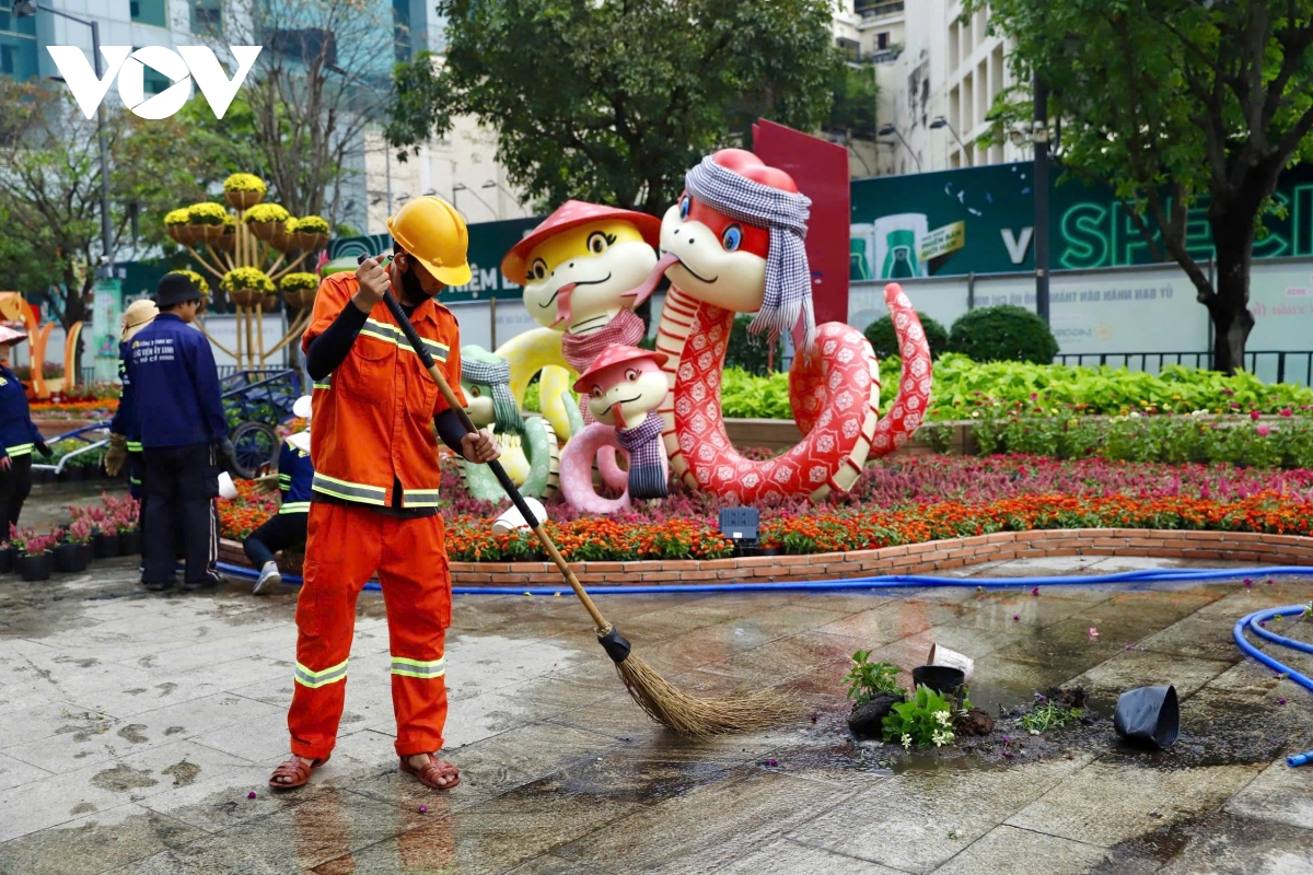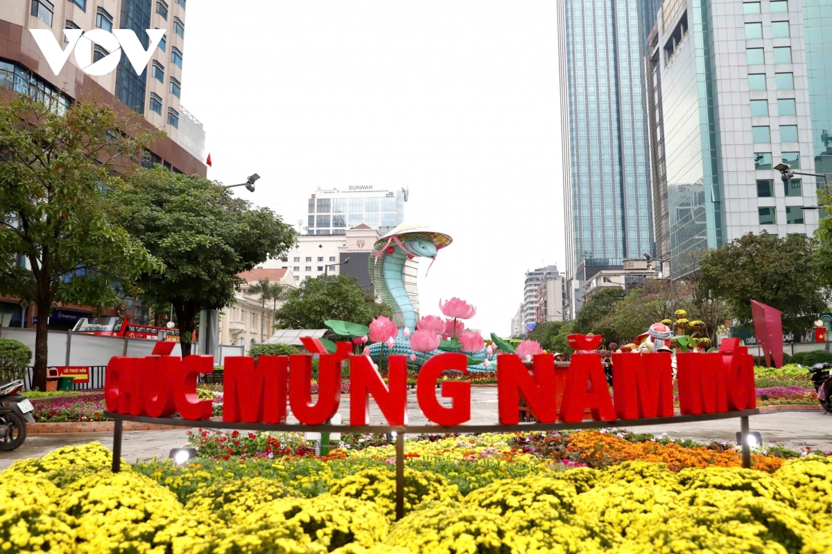 VOV.VN - Sau hơn một tuần thi công, cặp linh vật rắn Kim Tỵ, Ngân Tỵ trên đường hoa Nguyễn Huệ, TP.HCM đã thành hình, thu hút sự chú ý của người dân và du khách nước ngoài.