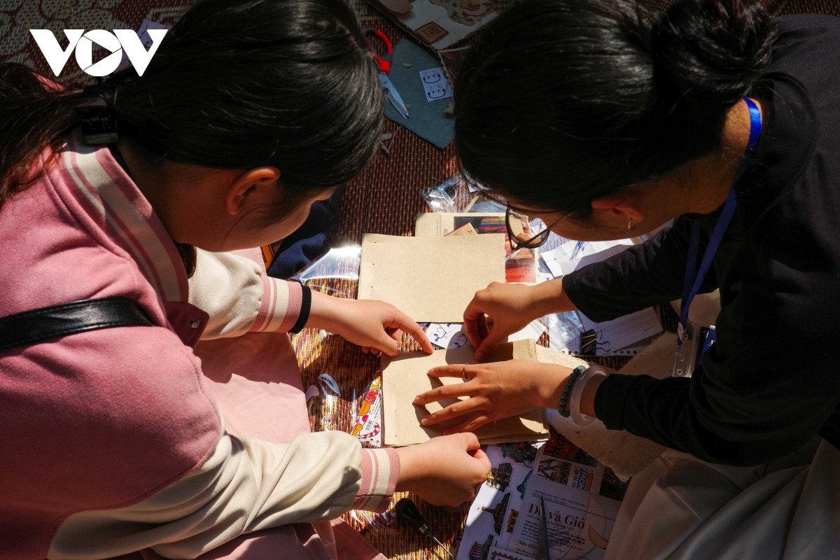 Mỗi gian trưng bày trở thành một “phòng học mở”, nơi nghệ nhân chia sẻ kỹ thuật, sinh viên tự tay thực hành, còn các chuyên gia trao đổi về hướng phát triển công nghiệp văn hóa dựa trên di sản.