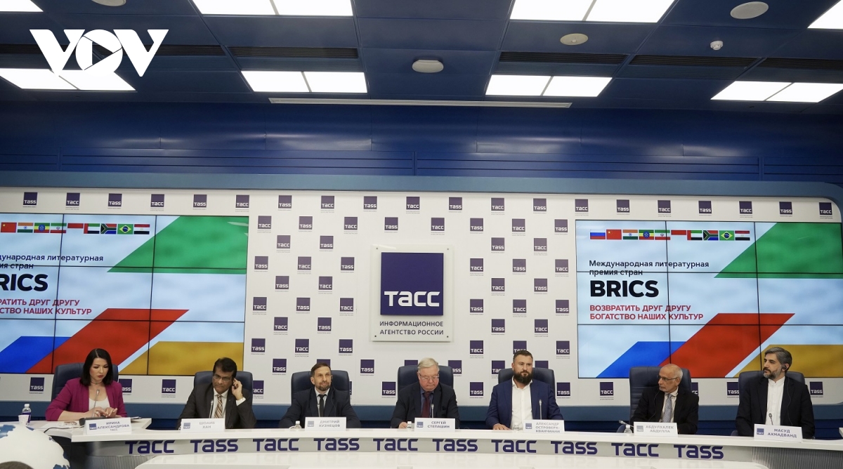 VOV.VN - Ngày 30/6, tại Trung tâm Báo chí TASS, thủ đô Moscow, Liên bang Nga, diễn ra buổi họp báo quốc tế công bố Giải thưởng Văn học BRICS. Đây là giải thưởng văn học quốc tế mới, được sáng lập tại diễn đàn “Giá trị truyền thống” vào tháng 11/2024.