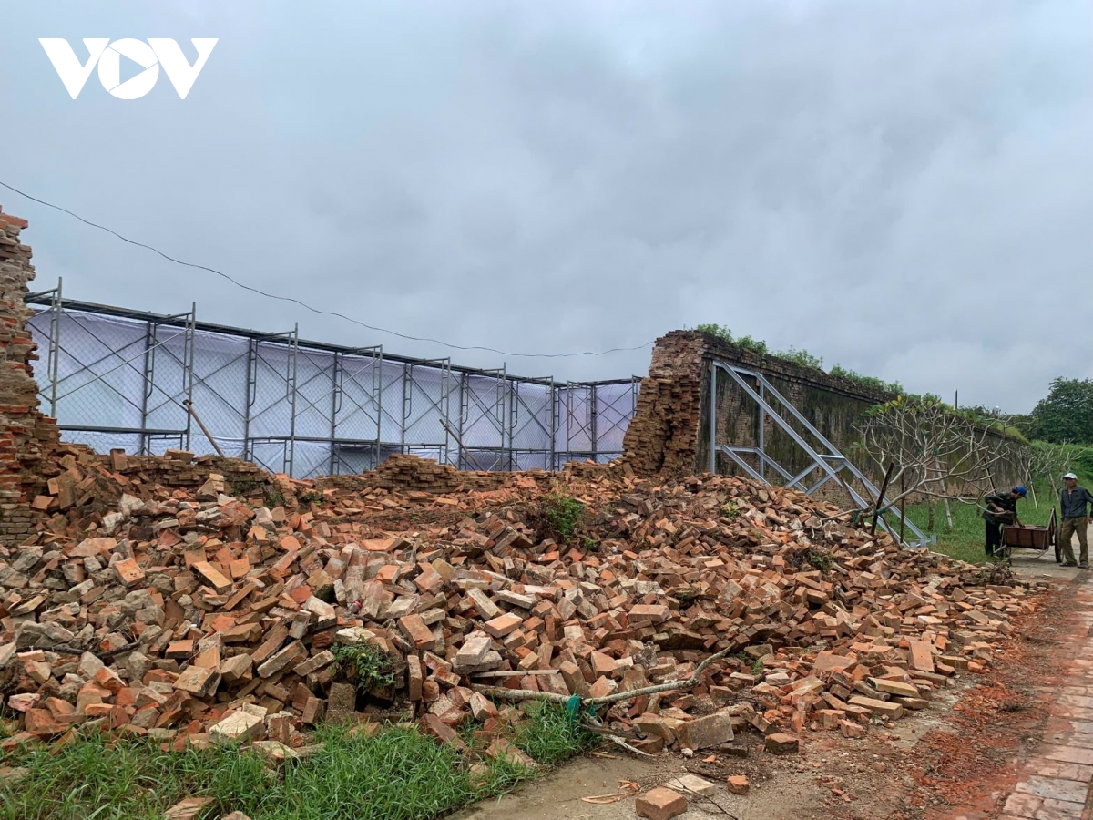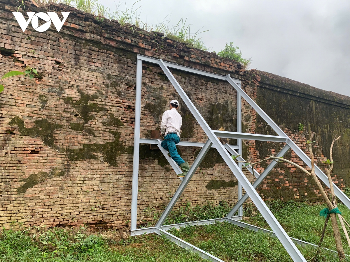 Ông Lê Công Sơn, Phó Giám đốc Trung tâm Bảo tồn Di tích Cố đô Huế cho biết, Trung tâm cũng đã rà soát tổng thể bốn mặt của tường thành và tiến hành gia cố tạm thời những điểm bị lún, nghiêng: