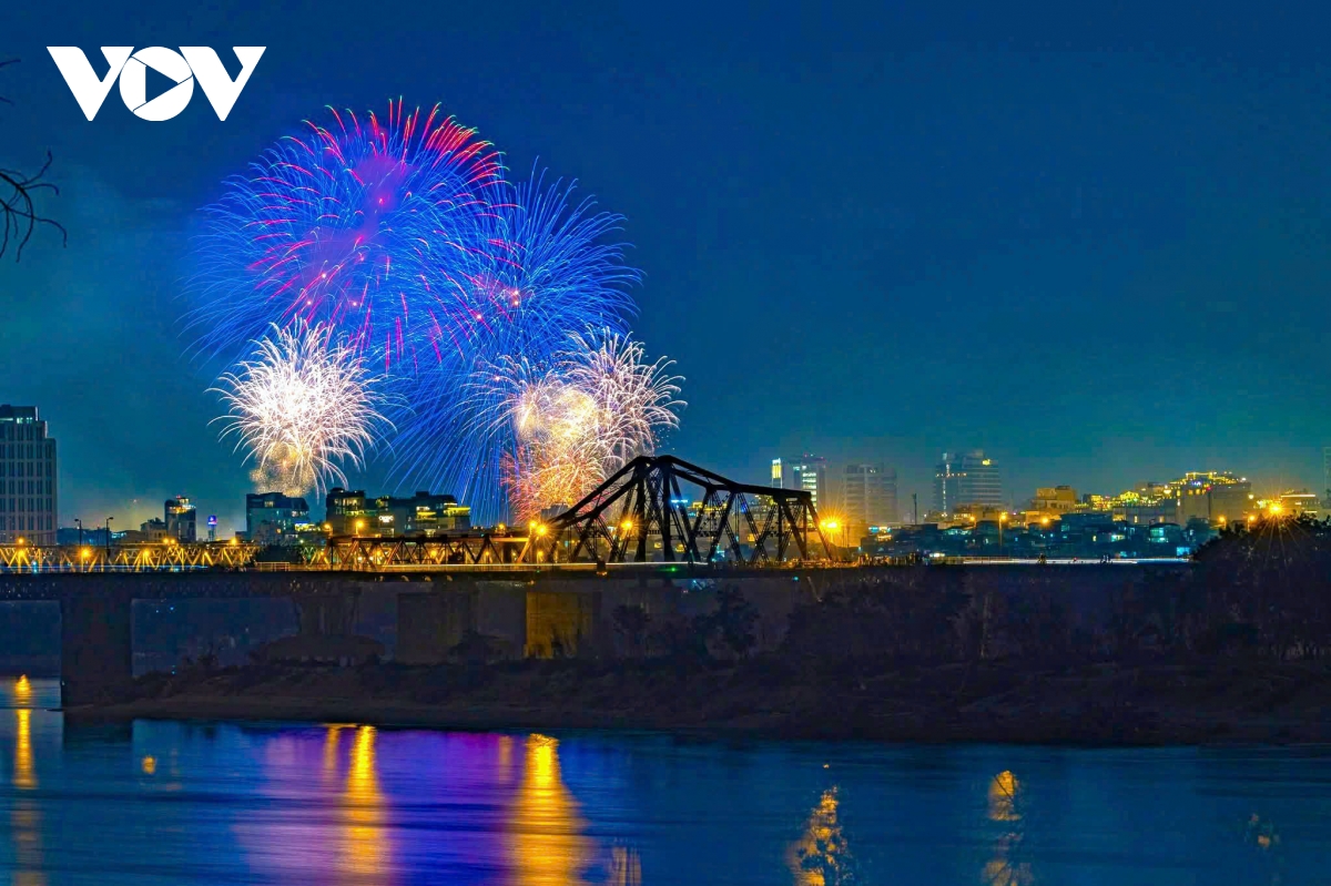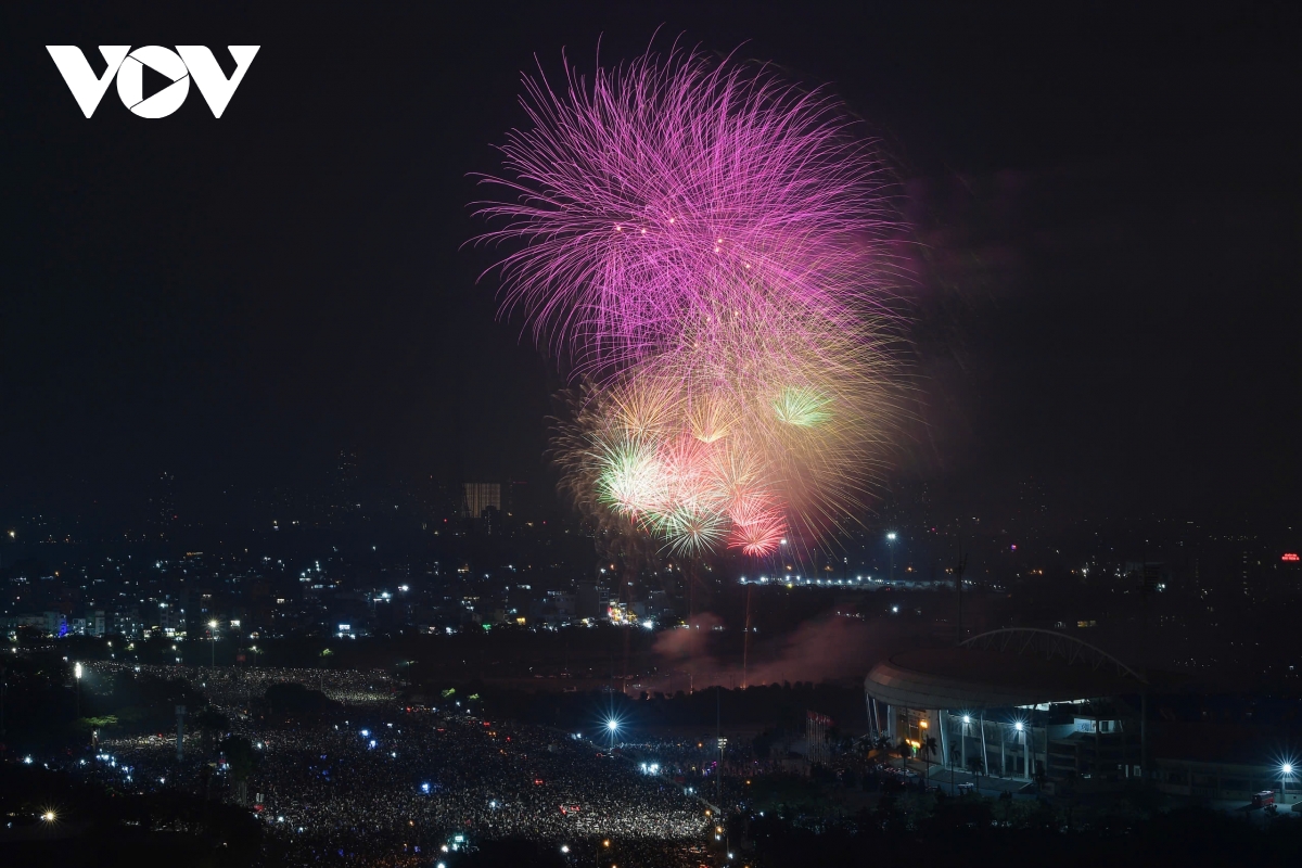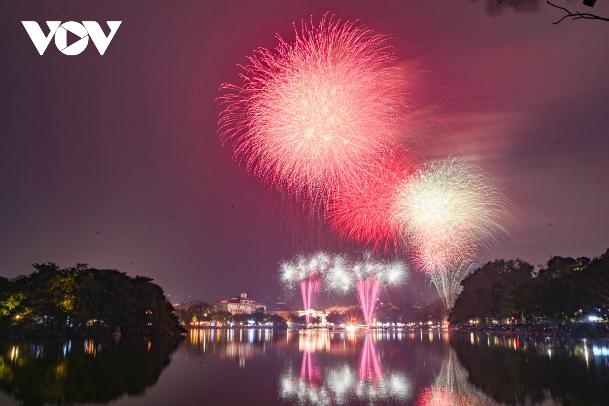VOV.VN - Đúng thời khắc chuyển sang năm 2026, bầu trời Hà Nội bừng sáng với màn pháo hoa kéo dài 15 phút từ 23h45 ngày 31/12/2025 đến 0h ngày 1/1/2026 tại 5 điểm, 6 trận địa. Hàng vạn người dân, du khách reo hò, ghi lại khoảnh khắc giao thừa rực rỡ.