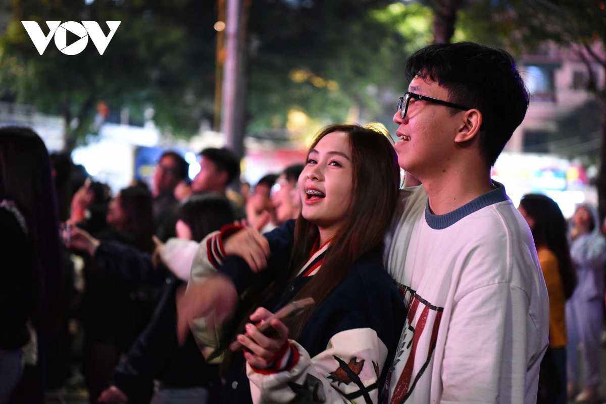 Không khí đêm giao thừa vì thế càng thêm đặc biệt khi những tiếng reo hò vang lên, nhiều người tranh thủ ghi lại khoảnh khắc đáng nhớ, gửi lời chúc nhau một năm mới bình an, nhiều khởi sắc.