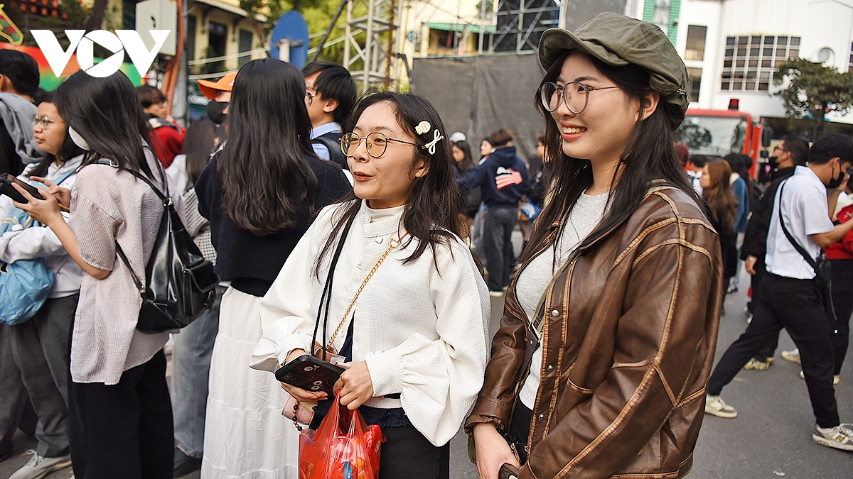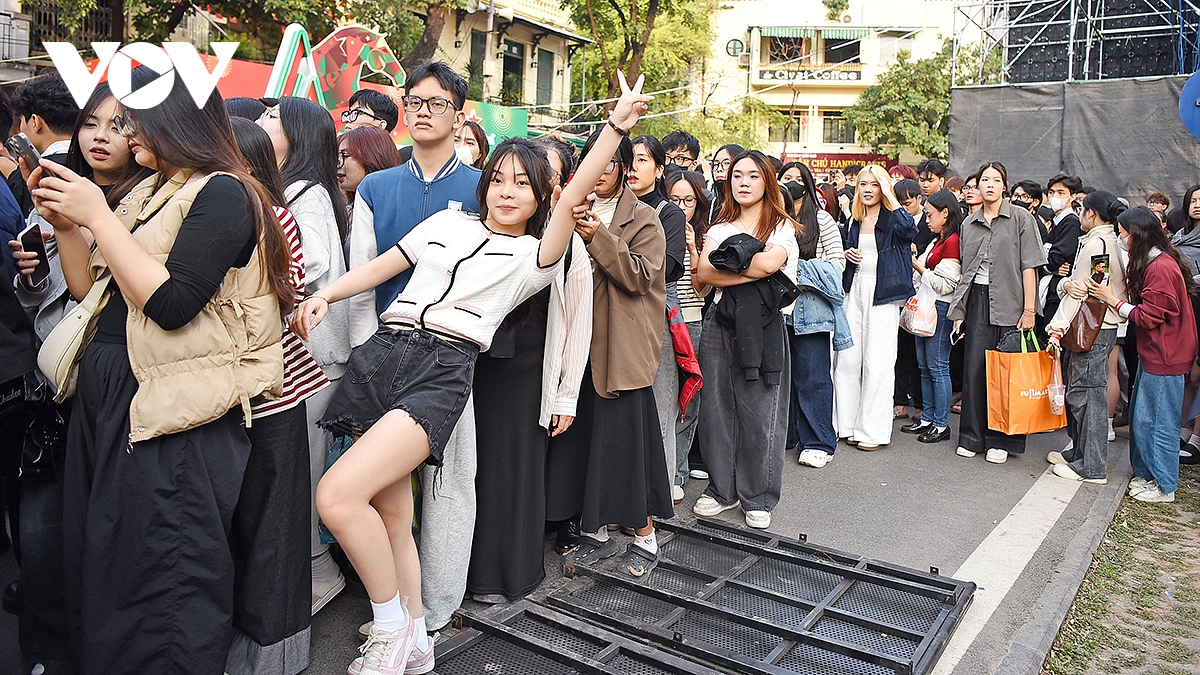 Thời gian càng lùi về cuối ngày, dòng người đổ về khu vực quảng trường Đông Kinh Nghĩa Thục càng đông đúc, náo nhiệt.