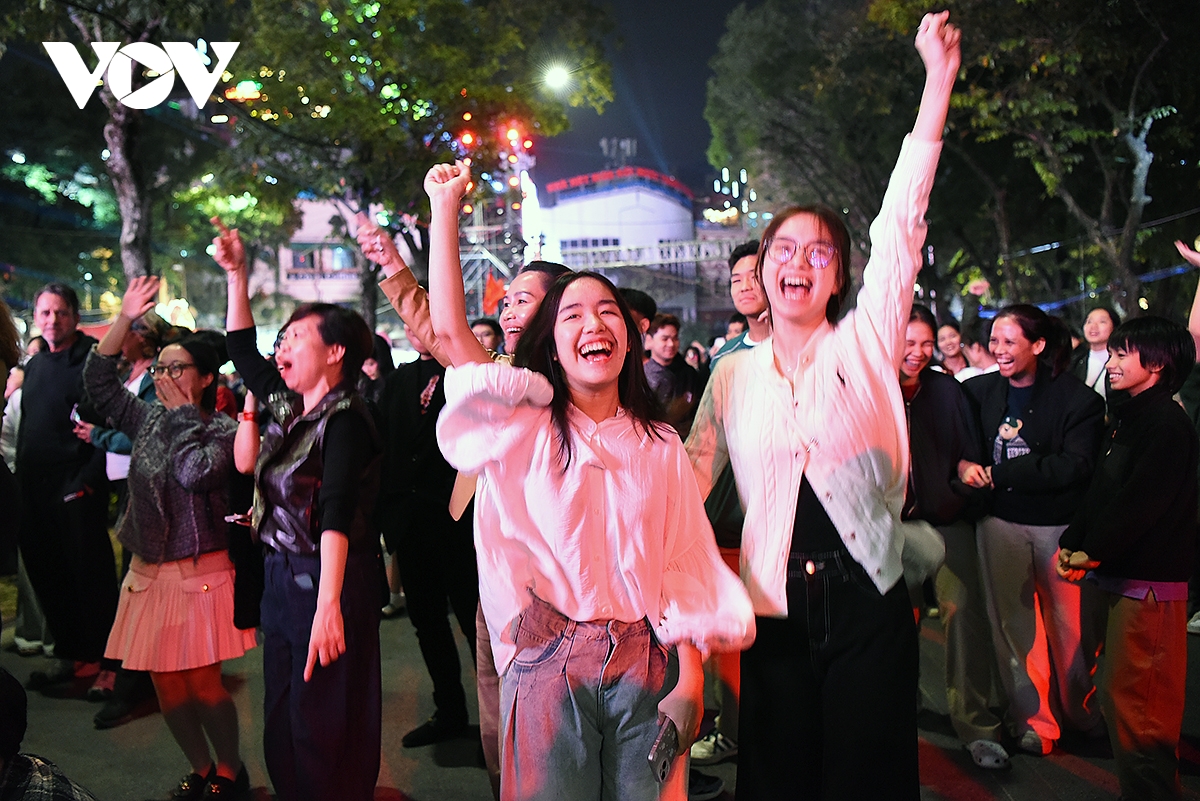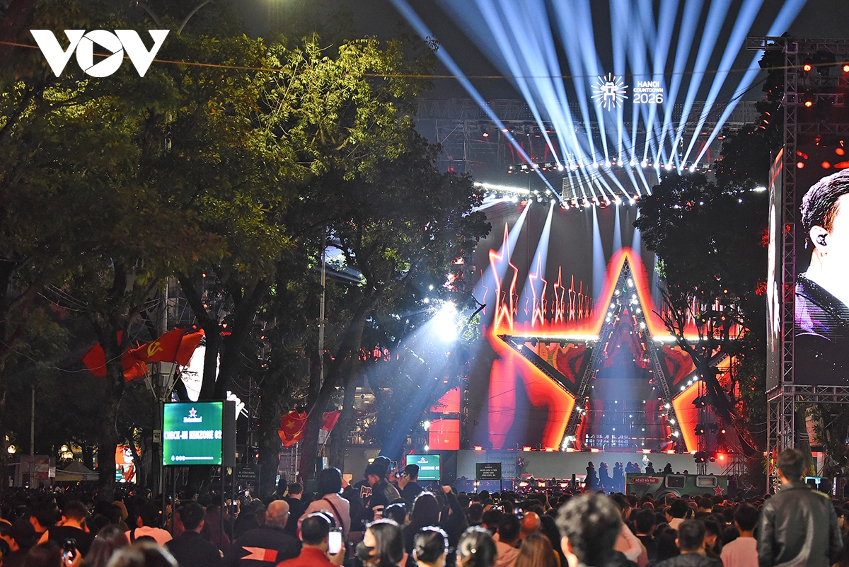 VOV.VN - Hòa trong niềm vui chung đón giao thừa 2026 tại Hà Nội, hàng vạn người dân Thủ đô và du khách đã tụ về khu vực sân khấu chương trình ánh sáng và nghệ thuật “Countdown 2026 - Opening Real Connection 2” tại quảng trường Đông Kinh Nghĩa Thục trong không khí rộn ràng, hân hoan, hạnh phúc đón mừng năm mới 2026