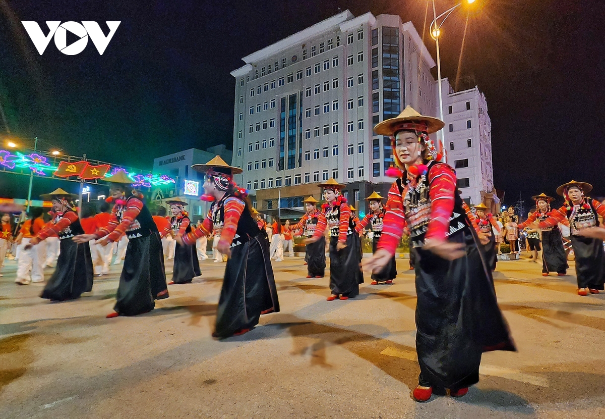 Bắt đầu từ 20h, Lễ hội đường phố “Tinh hoa Tây Bắc” mở đầu bằng chương trình nghệ thuật ấn tượng mang đậm những nét văn hóa của các dân tộc Tây Bắc. Kế đến là không gian nghệ thuật rực rỡ sắc màu đã mở ra với các màn diễu hành ấn tượng, trình diễn dân ca, dân vũ, dân nhạc, cùng các bộ trang phục truyền thống đặc trưng của đồng bào các dân tộc Tây Bắc ngay trên tuyến đường Võ Nguyên Giáp.
