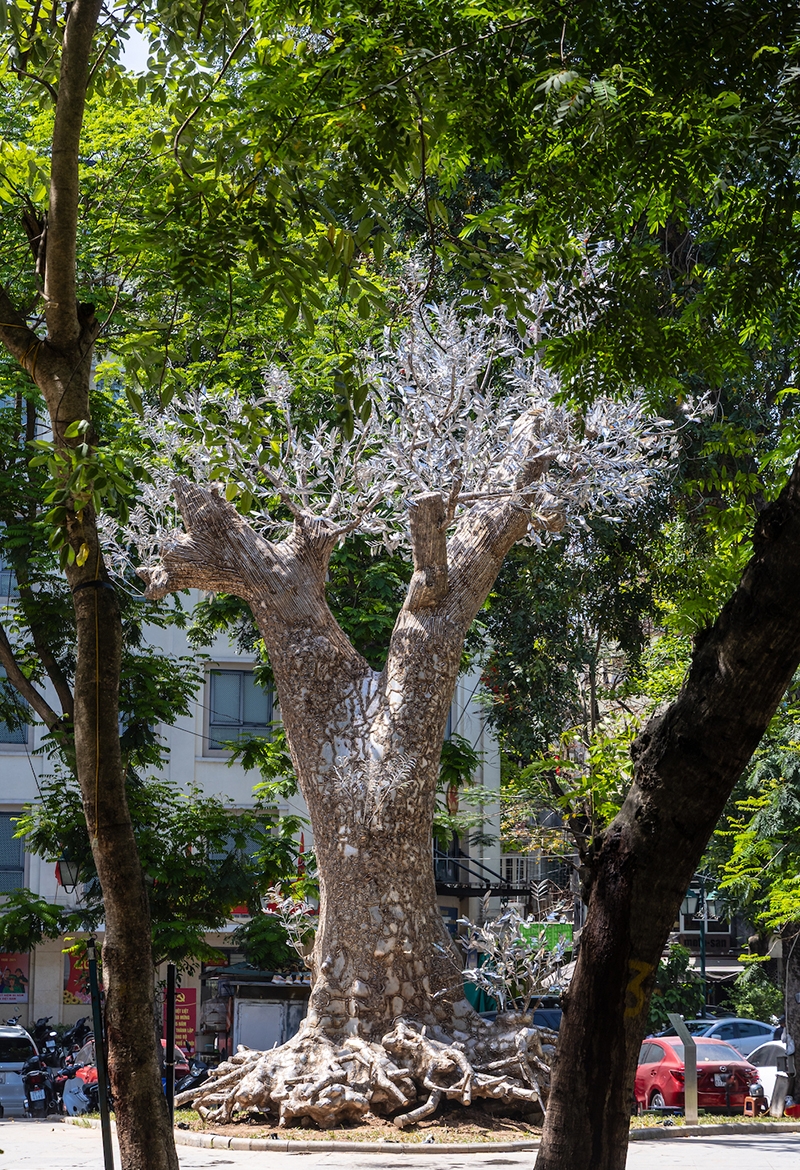 Trong ánh kim lấp lánh của lá thép, trong lớp vỏ xù xì của thép gò thủ công, người xem không chỉ thấy một cây cổ thụ được sống lại, mà còn thấy một Hà Nội kiên cường, nhân hậu – luôn biết cách đứng dậy sau bão giông.