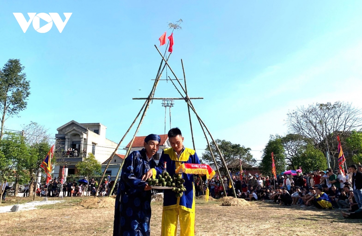 Tiếp đến là phần tranh tài quyết liệt và đẹp mắt của nam thanh niên, trong tiếng reo hò cổ vũ của người xem. Anh Nguyễn Tấn Tài, thanh niên làng Gia Viên tham gia hội đu chia sẻ, đây là lễ hội truyền thống có từ xa xưa cho nên thanh niên trong làng đều tham gia với mục đích xây dựng và gìn giữ nét truyền thống mà cha ông đã để lại, tạo không khí vui tươi đầu năm mới.