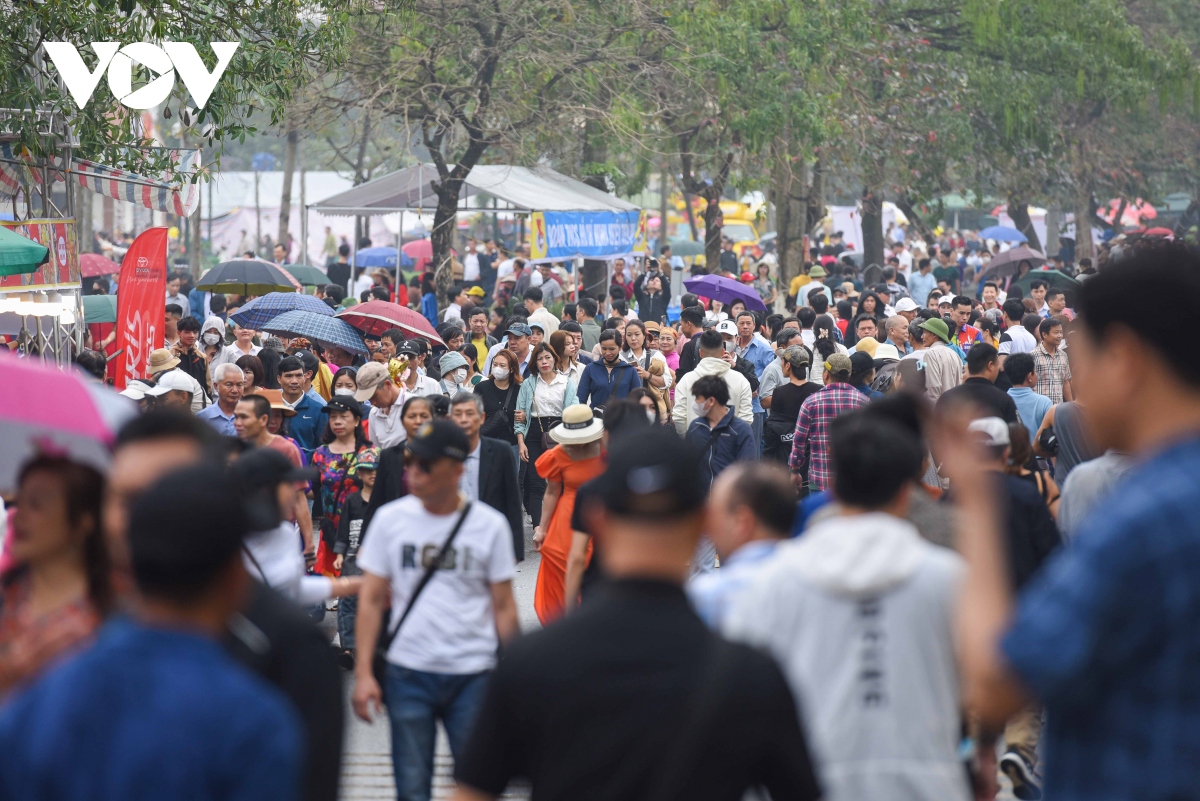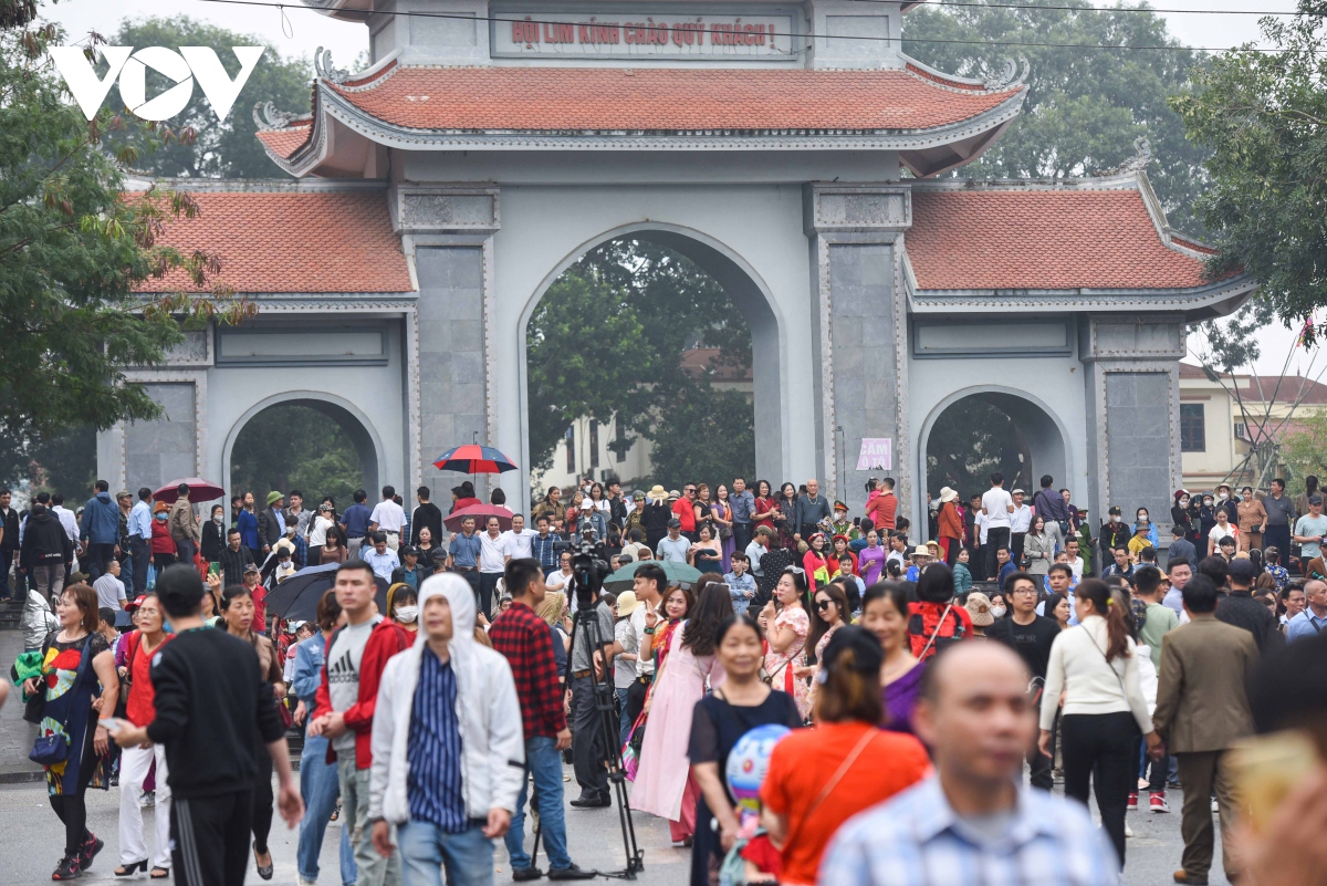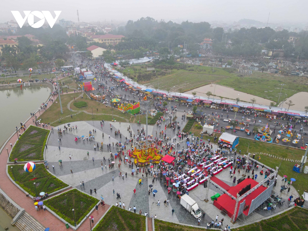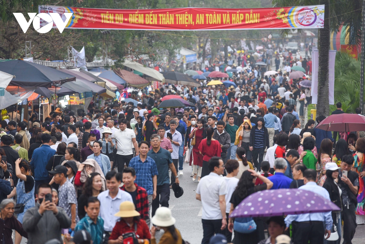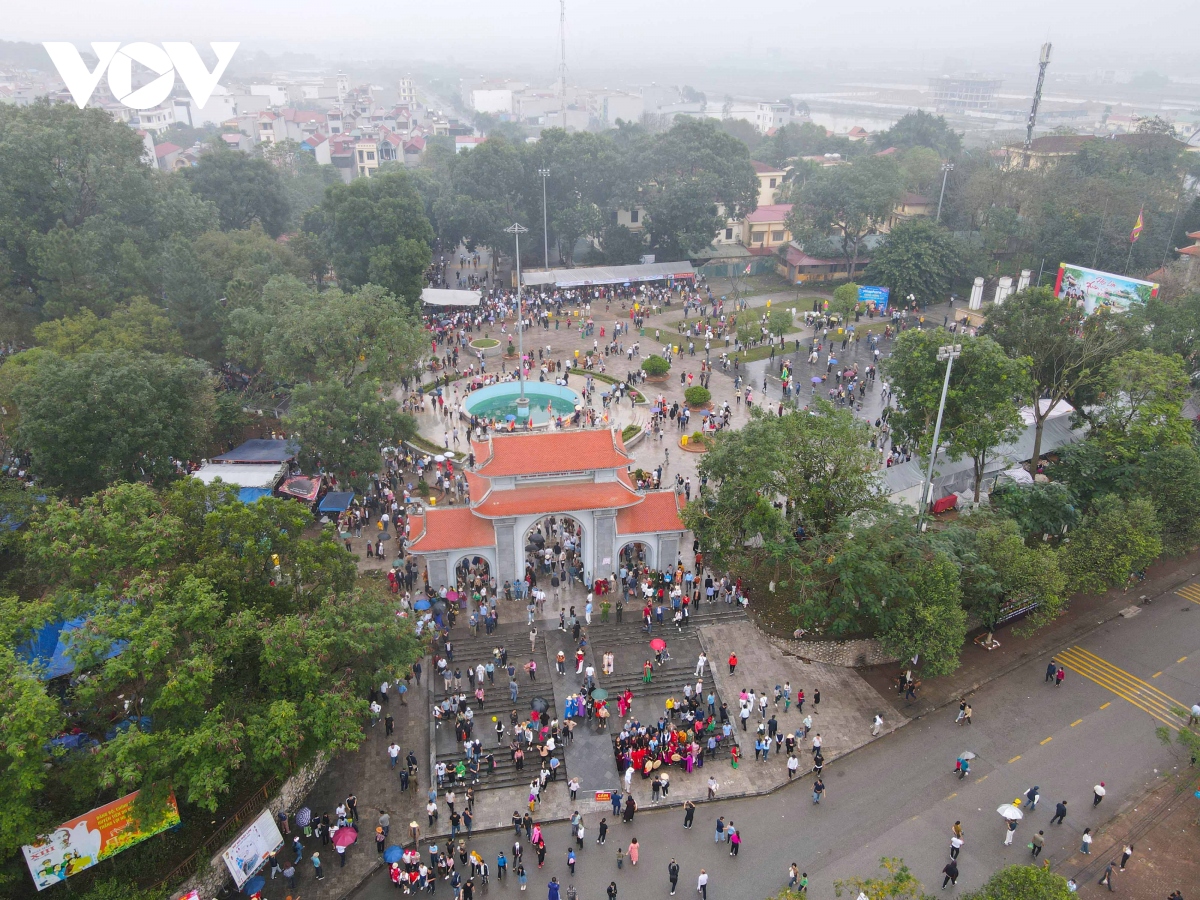 Theo ghi nhận của phóng viên Báo Điện tử VOV.VN, mặc dù trời mưa phùn nhẹ, nhưng rất đông người dân và du khách thập phương đã đổ về đây nghe hát quan họ và tham gia các trò chơi dân gian.