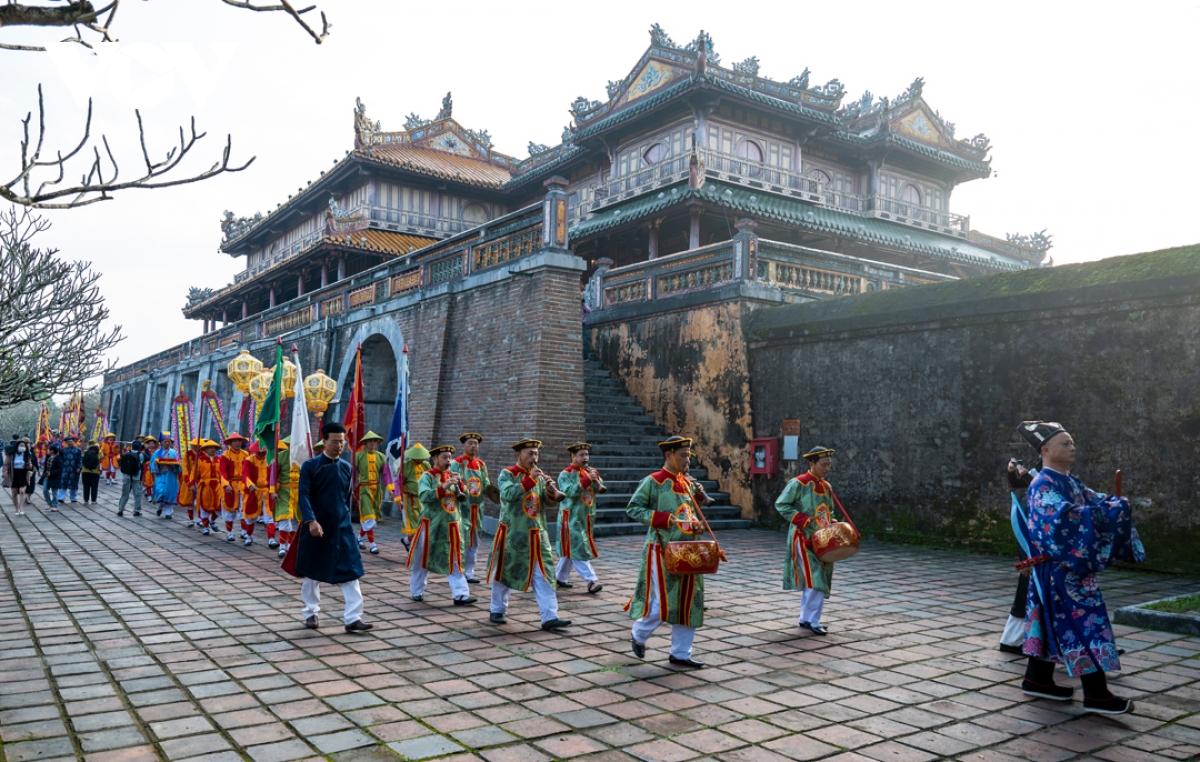VOV.VN - Sáng 22/1 (23 tháng Chạp), Trung tâm bảo tồn di tích Huế đã thực hiện nghi lễ Thưởng Tiêu trong Hoàng cung.