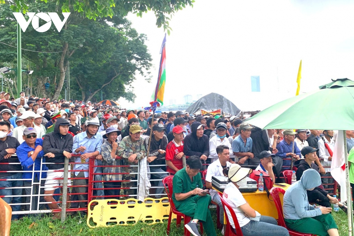 Ngay từ sáng sớm, hai bờ sông Hương đã rộn rã tiếng reo hò, tiếng trống thúc giục hòa cùng nhịp mái chèo dồn dập. Giải năm nay quy tụ 10 đội ghe với hơn 300 vận động viên nam, nữ đến từ các địa phương vùng sông nước trên địa bàn thành phố Huế. Mỗi đội gồm 10 tay chèo và 1 tay lái, tranh tài ở 10 đội đua với các nội dung: giải cúng, giải tiền và giải phá. Các tay chèo thi đấu quyết liệt, mang đến những màn rượt đuổi kịch tính, hấp dẫn.