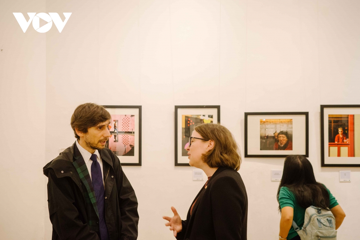 Các vị khách quốc tế trao đổi cảm nhận về triển lãm – nơi nhiếp ảnh trở thành cầu nối giữa văn hóa Ireland và Việt Nam.