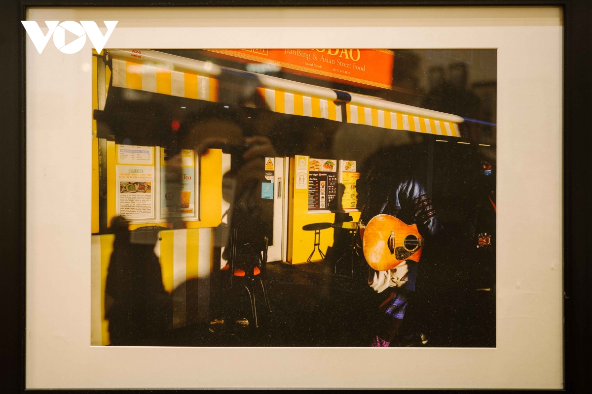Một góc trưng bày trong triển lãm, nơi hình ảnh những con phố nhỏ, gương mặt người qua đường và ánh đèn phản chiếu tạo nên nhịp thở của đô thị đương đại.