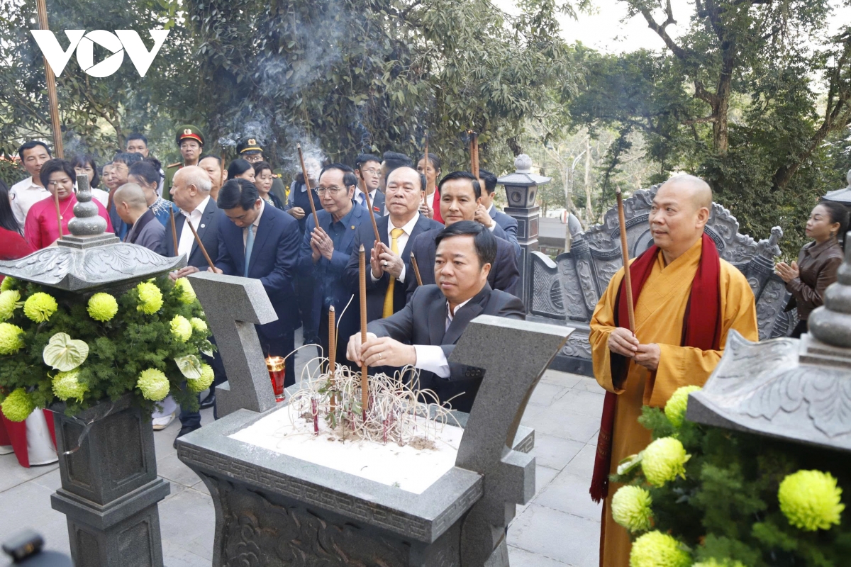 Ông Bùi Văn Lương, Ủy viên BTV, Phó Chủ tịch UBND tỉnh Thái Nguyên cùng các đại biểu dâng hương tại lễ khánh thành