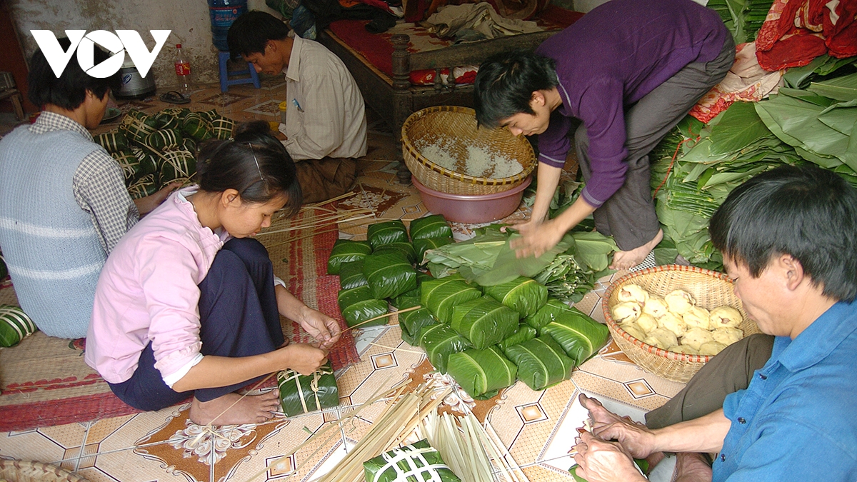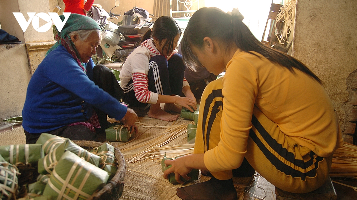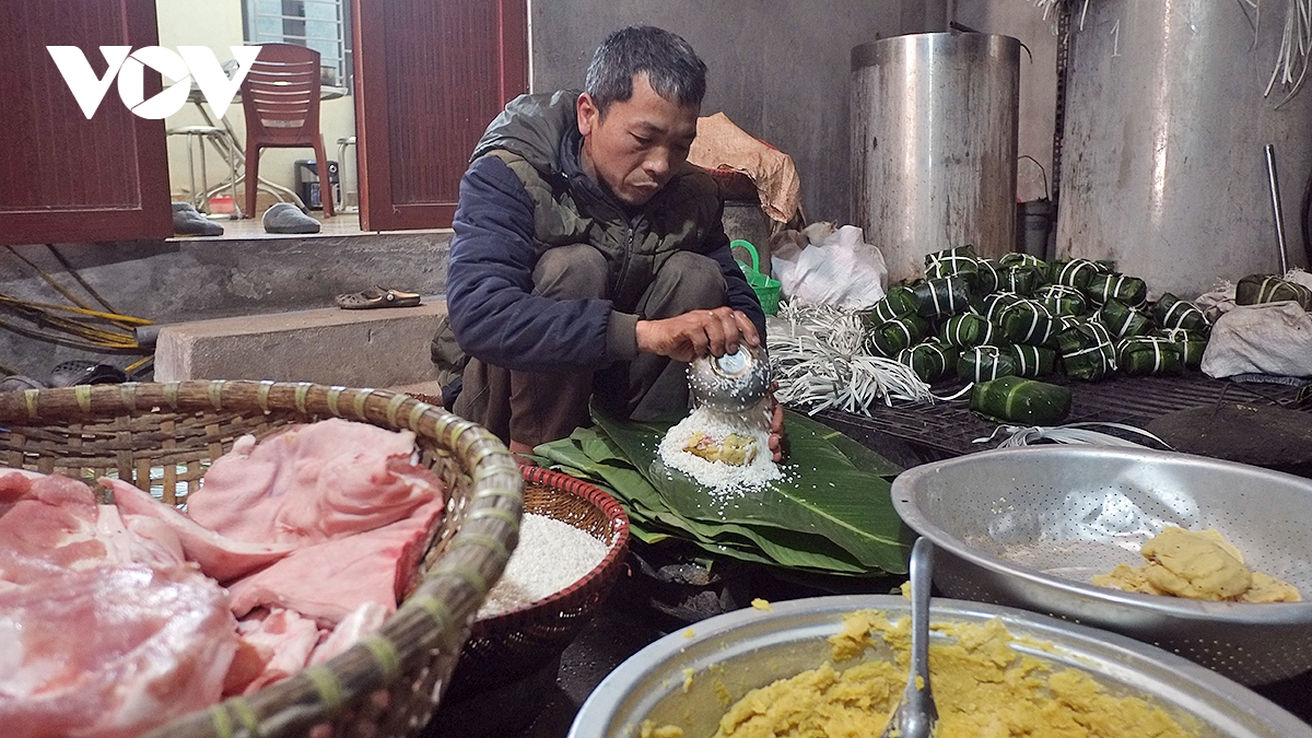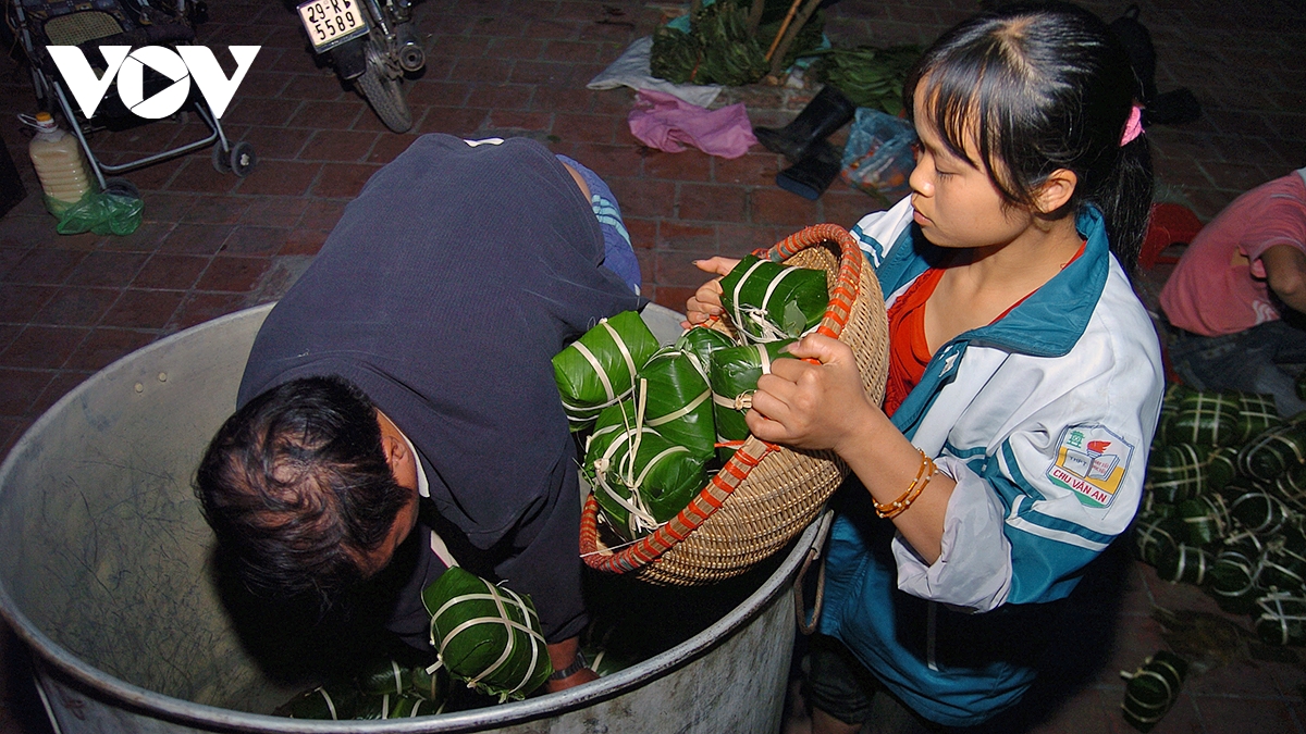 VOV.VN - Nhiều hộ dân ở làng nghề bánh chưng Tranh Khúc (xã Nam Phù, Hà Nội) những ngày này tất bật vào vụ Tết, huy động tất cả thành viên trong gia đình tham gia vào các công đoạn làm bánh chưng. Cao điểm của vụ bánh chưng Tết hàng năm là từ ngày 20 tháng Chạp và kéo dài đến rằm tháng Giêng năm sau.