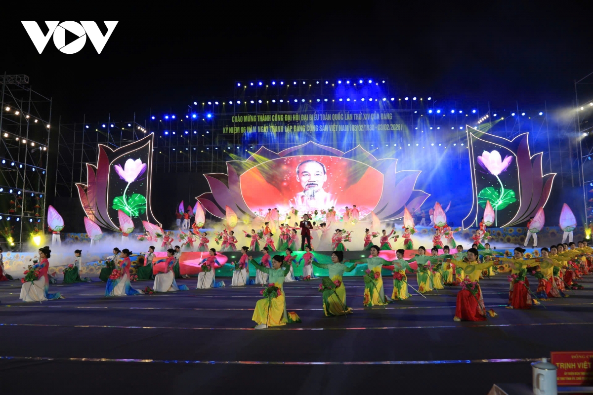 Chương trình nghệ thuật “Tự hào tiến bước dưới cờ Đảng quang vinh” được dàn dựng công phu, kết hợp giữa chính luận và nghệ thuật biểu cảm, truyền tải chiều sâu lịch sử và khát vọng phát triển của quê hương trong giai đoạn mới đã để lại ấn tượng sâu sắc với người xem. Kết thúc chương trình là màn pháo hoa rực rỡ, tiếng vỗ tay hòa trong giai điệu “Như có Bác trong ngày vui đại thắng”, tạo nên không khí mừng Đảng, mừng Xuân thêm hân hoan, rộn ràng.