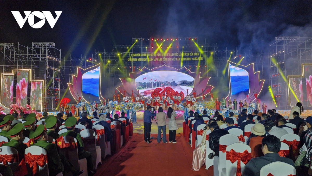 Với chủ đề “Tự hào tiến bước dưới cờ Đảng quang vinh”, Chương trình nghệ thuật gồm 3 chương; “Mặt trời trong tim”; “Những sắc hoa đoàn kết”; “Niềm tin khát vọng", có sự tham gia của nhiều nghệ sỹ tên tuổi, như Viết Danh, Khắc Hiếu, Vân Anh, các ca sỹ của tỉnh Lào Cai và hơn 1.100 diễn viên chuyên nghiệp và không chuyên trong tỉnh đã khơi gợi dòng chảy lịch sử 96 năm của Đảng và khí thế phấn khởi sau Đại hội XIV. Nhiều tiết mục nhận được tràng pháo tay dài của khán giả, nhất là phần dân vũ của diễn viên quần chúng các phường Yên Bái, Văn Phú, Nam Cường và các em học sinh, thể hiện tinh thần đại đoàn kết toàn dân tộc và niềm tin vào tương lai.