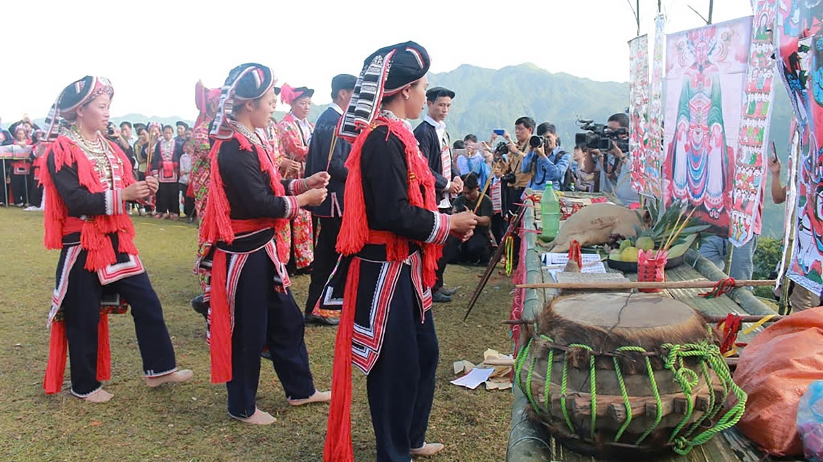 Các thầy cúng cùng bà con người Dao tạ ơn tổ tiên, Bàn Vương