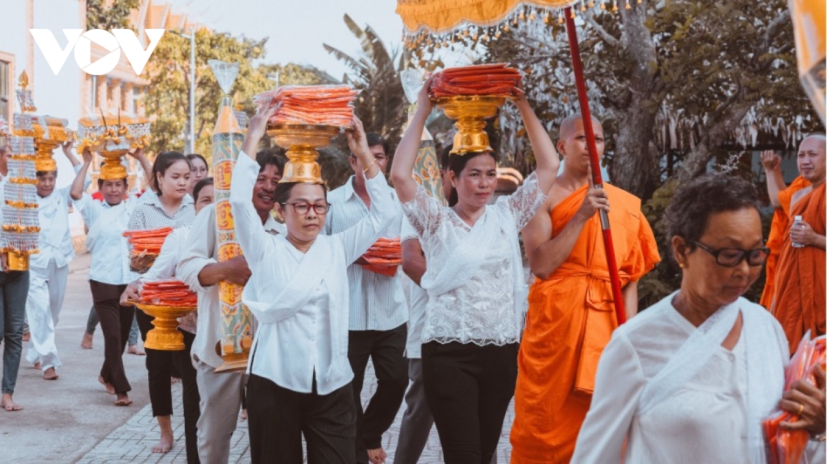 VOV.VN - Từ rằm tháng 9 đến rằm tháng 10 âm lịch, khi mưa đầu mùa vừa dứt, cộng đồng Khmer Nam Bộ hân hoan đón Lễ Kathyna - lễ hội tôn giáo lớn và thiêng liêng nhất trong năm. Tại xã Hưng Mỹ, tỉnh Vĩnh Long, chùa Ô Ka Đa rộn rã tiếng trống, tiếng khánh, tiếng tụng kinh, mở ra mùa lễ hội đậm đà bản sắc Khmer.