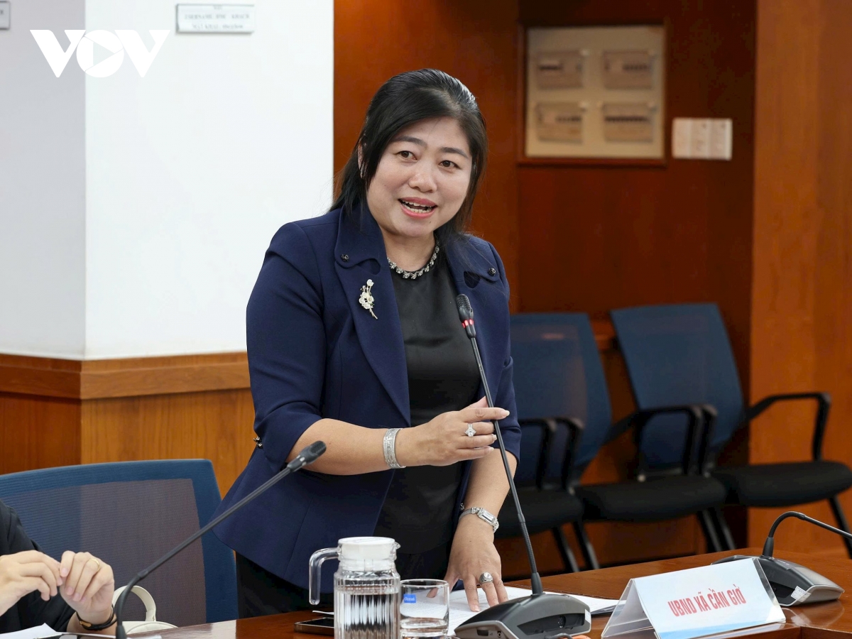 Bà Võ Thị Diễm Phượng, Phó Chủ tịch UBND xã Cần Giờ thông tin tại họp báo. (Ảnh: TTBC)