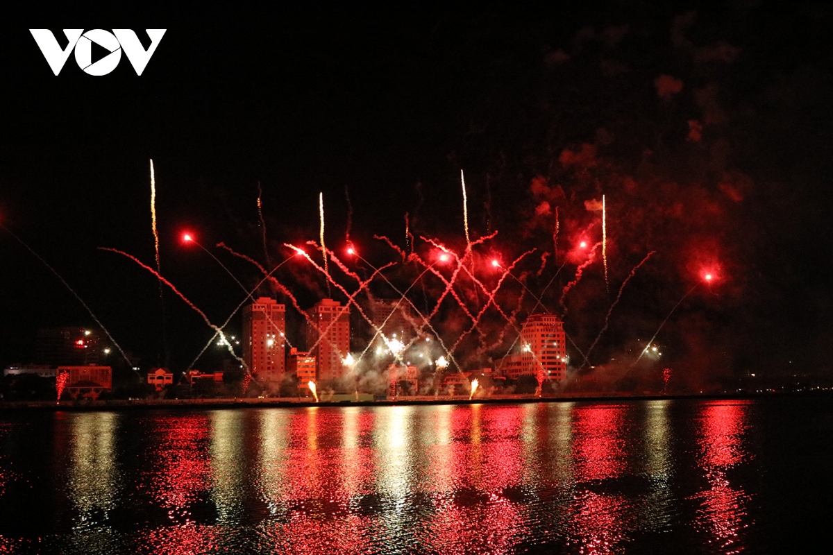 Đội pháo hoa Trung Quốc mở đầu đêm thi thứ 4 DIFF 2024 tạo ấn tượng với khán giả qua nàn trình diễn mang tên “Bài hát Mùa hè”. Lấy cảm hứng từ nghệ thuật thêu tay truyền thống, đội pháo hoa Trung Quốc thêu dệt trên bầu trời đêm sông Hàn những hình ảnh, cảnh quan hùng vỹ, quyến rũ, đắm say du khách. Những kỷ xảo, âm thanh đặc sắc kết hợp giữa nghệ thuật pháo hoa truyền thống và sự sáng tạo hiện đại mang đến khán giả nhiều cung bậc cảm xúc với khúc ca mùa hè lãng mạn trên sông Hàn, Đà Nẵng. Những chùm pháo hoa nghệ thuật phun trào, tô vẽ những sắc màu rực rỡ trên nền âm nhạc đậm chất Trung Hoa đưa khán giả gần hơn với cảnh sắc, văn hóa của đất nước Trung Quốc.
