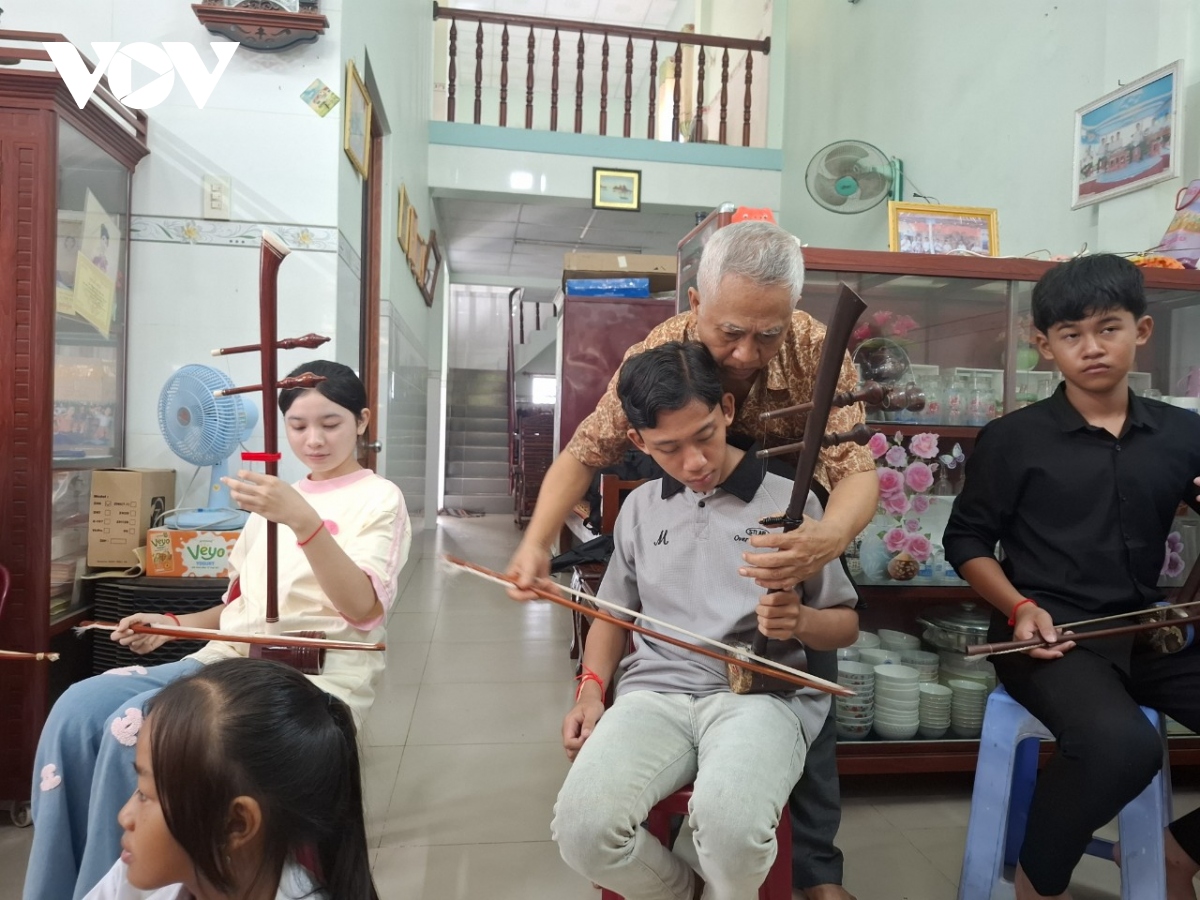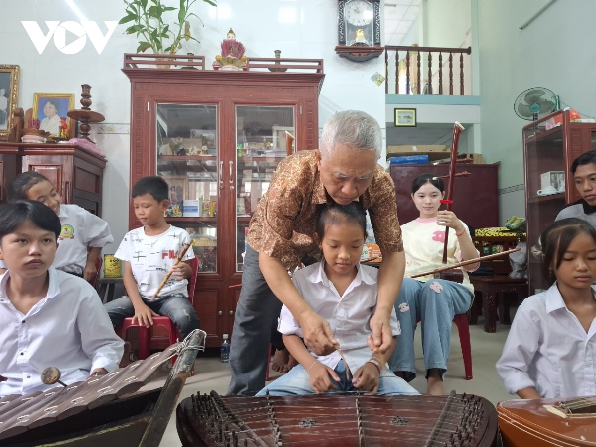 Đến với lớp học, các em được ông Thạch Thia Sê Rây truyền dạy cách chơi nhiều loại nhạc cụ truyền thống của dân tộc Khmer như: đàn khưm, đàn tà khê, đàn cò, đàn gáo, trống tay, thổi sáo...