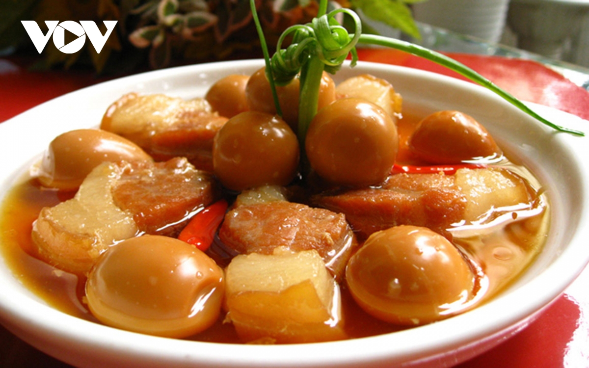 Thịt kho tàu miền Tây được kho bằng thịt ba chỉ, nước dừa và ớt sừng. Chụm lửa liu riu thịt sẽ mềm dần, nước trong và lên màu vàng sẫm.