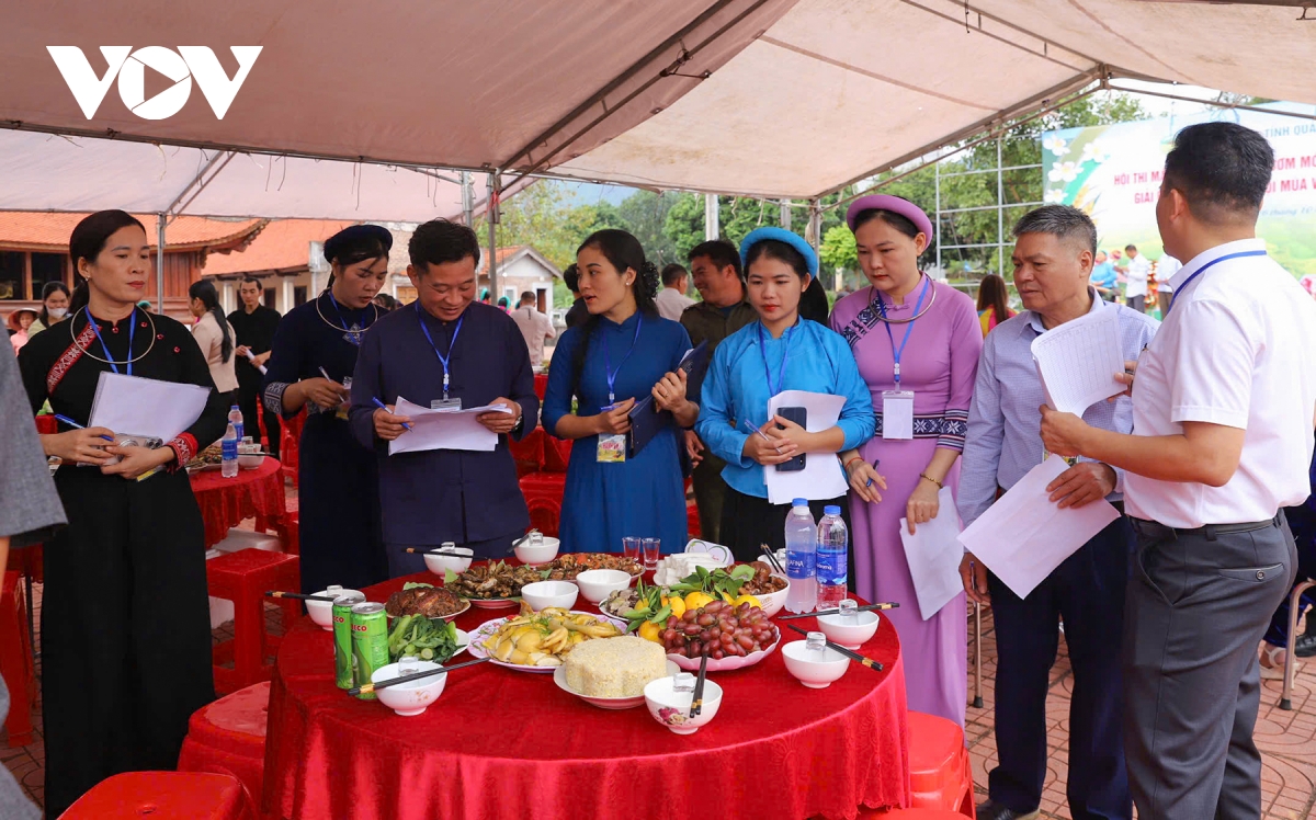 Chị Hà Thị Thuỷ, du khách tới xem Hội thi vui vẻ: "Tôi rất ấn tượng vì mỗi thôn đều có những sản vật của địa phương mà tới đây rồi tôi mới biết, rất hấp dẫn. Mỗi mâm có 1 đặc sắc riêng, như xôi rất đẹp, màu rất khác biệt, gạo rất thơm dẻo. Ngoài ra mâm nào cũng có là món khau nhục, làm rất kỳ công. Du khách xem cũng rất hào hứng".