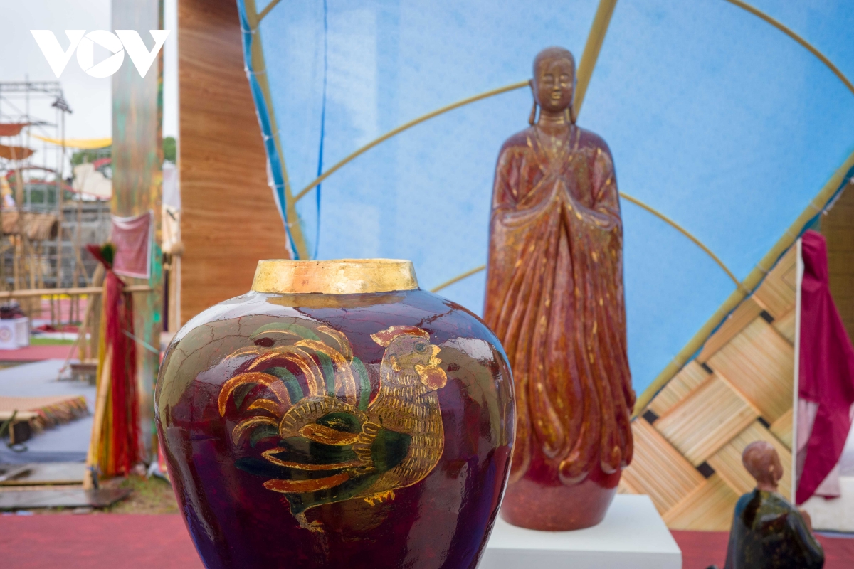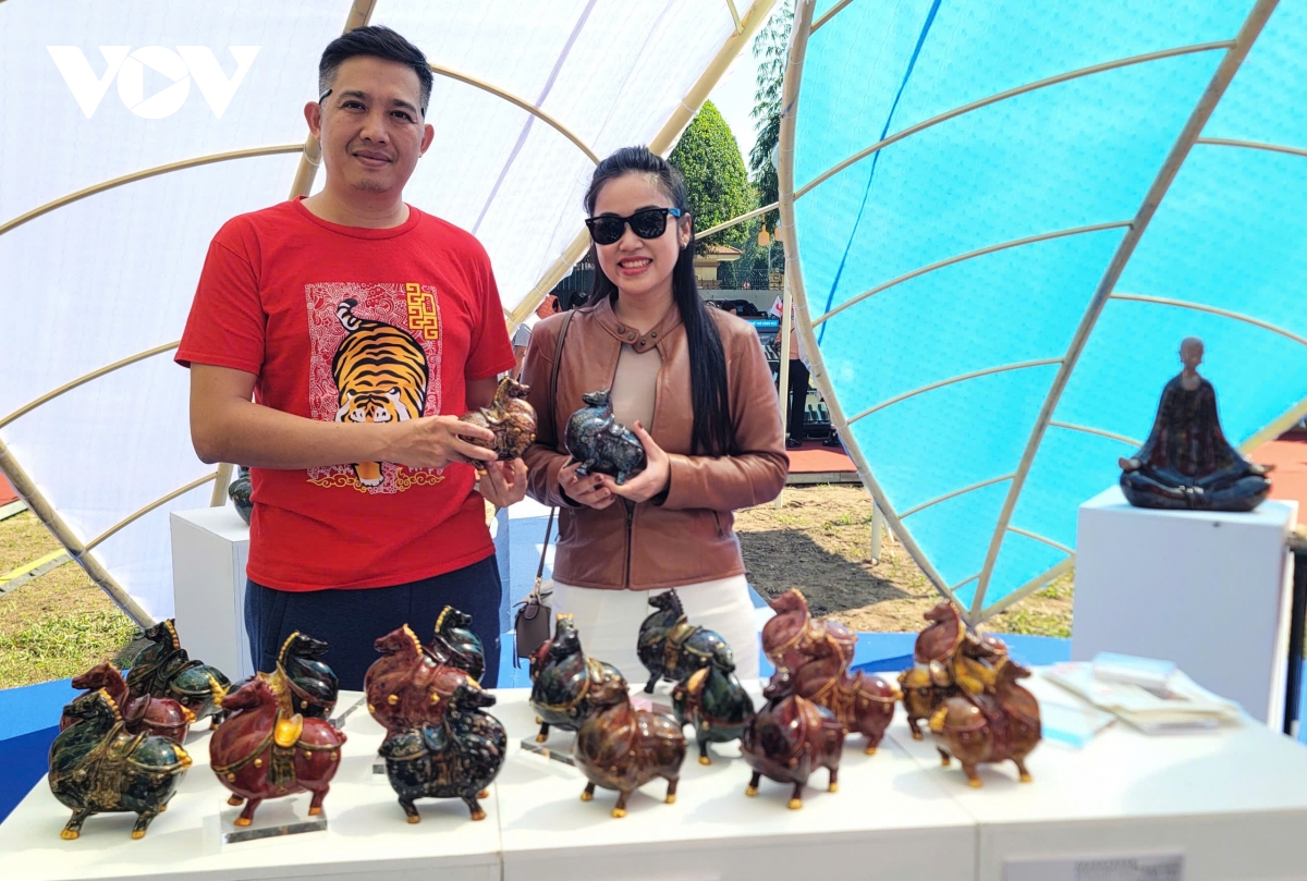 Một điểm nhấn của Festival năm nay là dòng sản phẩm sơn mài trên gốm- sản phẩm của nghệ sĩ và nghệ nhân. Những chiếc bình dáng cổ, đậm tinh thần Việt, được phủ sơn mài với kỹ thuật mới đã thu hút sự trầm trồ của du khách.