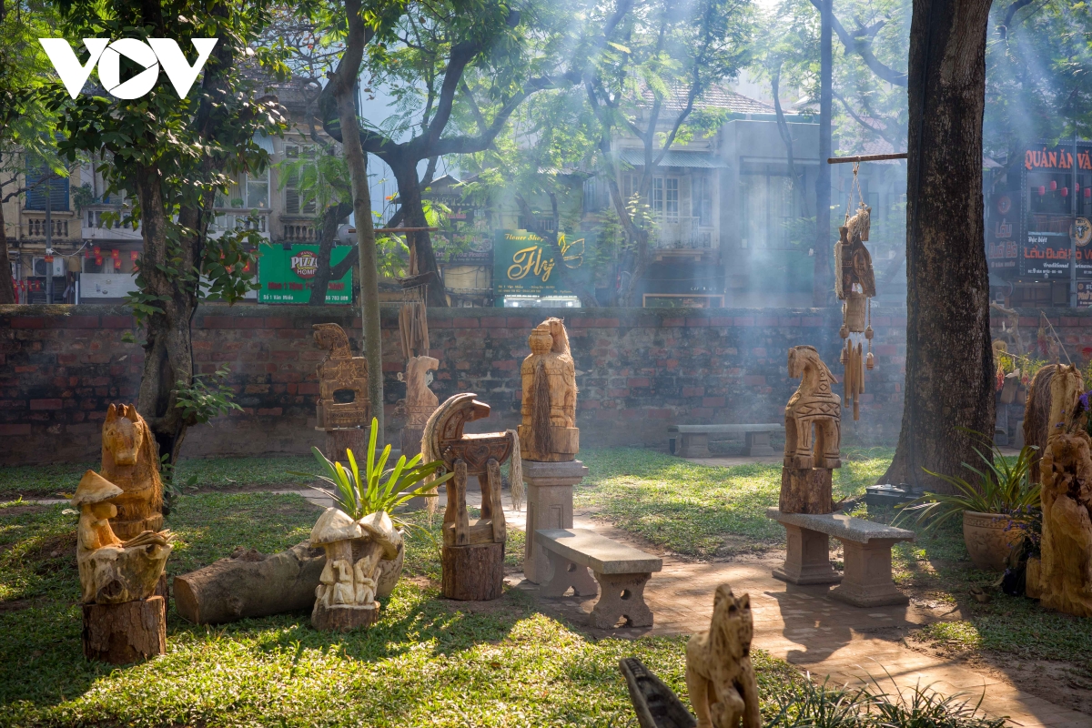 Một tác phẩm sắp đặt được đặt giữa sân Văn Miếu, tạo nên sự giao thoa trực tiếp giữa nghệ thuật đương đại và không gian kiến trúc cổ kính.