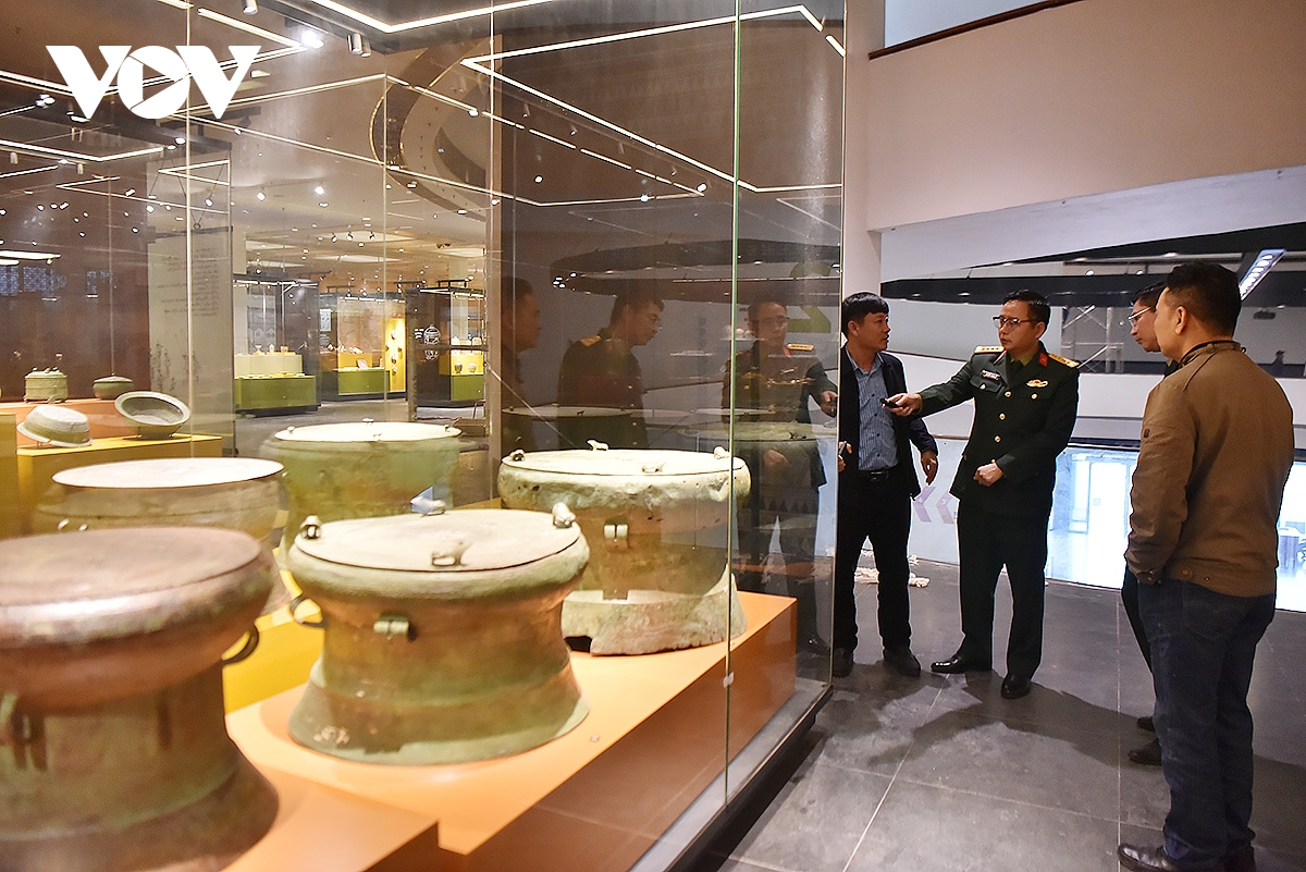 Ông Nguyễn Tiến Đà (bên phải), Giám đốc Bảo tàng Hà Nội cho biết, Bảo tàng Hà Nội hiện đang gấp rút hoàn thiện những hạng mục cuối cùng để mở cửa đón khách tham quan toàn bộ hệ thống trưng bày trên cả 4 tầng với 7 chủ đề xuyên suốt chiều dài lịch sử đất nước.