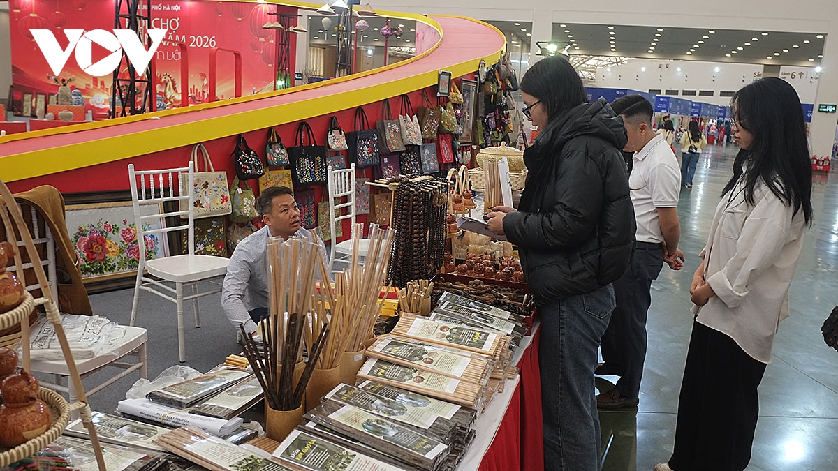VOV.VN - Trong khuôn khổ Hội chợ Mùa Xuân 2026, các không gian quản bá, trưng bày sản phẩm nghề truyền thống trở thành điểm hẹn văn hóa, sáng tạo giàu bản sắc, nơi tinh hoa làng nghề kết nối trực tiếp nghệ nhân với du khách tham quan.